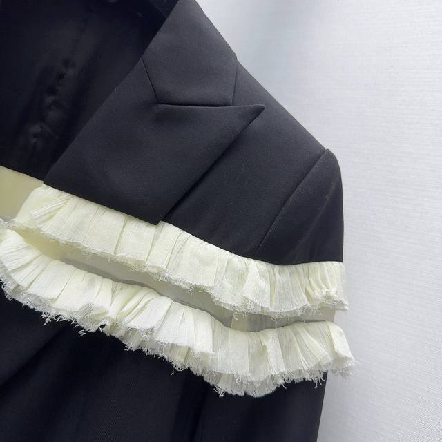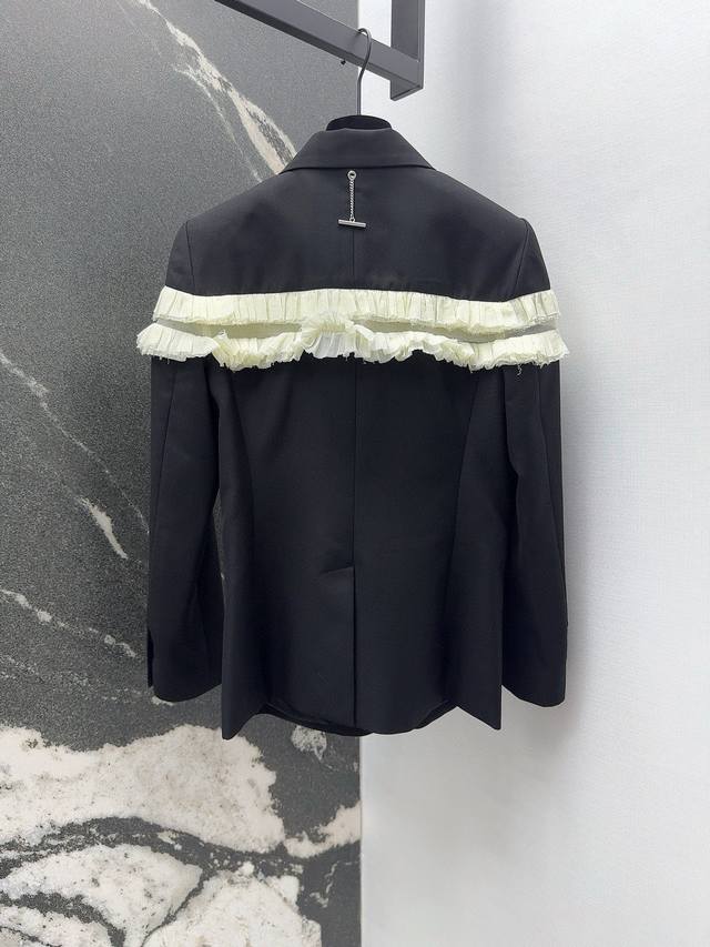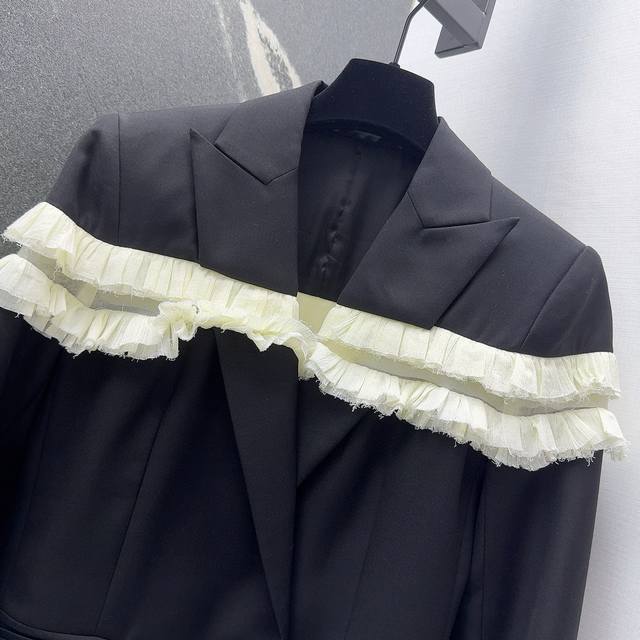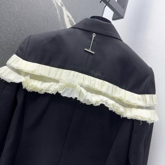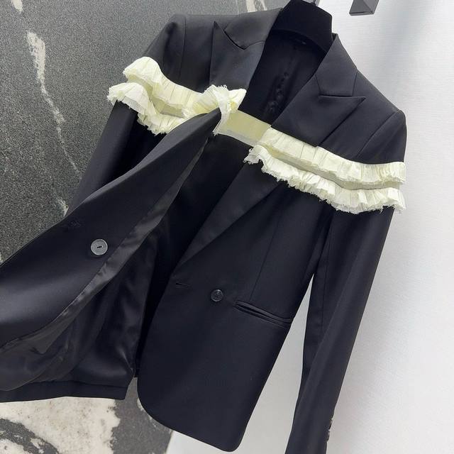 Mcq autumn and winter new arrival patchwork wood ear lace suit jacket with three-dimensional tailoring, sharp lapel style, and pleated wood ear edges for a layered look. A perfect fusion of fashion and sweetness, it is both cool and elegant. The upper body is super slim and casual without losing style. It is easy to wear for commuting and can be matched with different styles. Sml S size: chest 92, length 68,