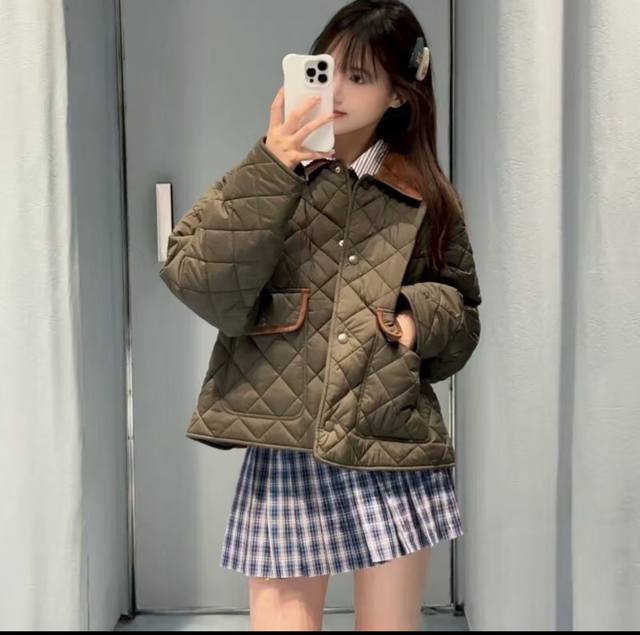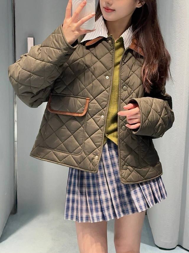 Military Green Diamond Checkered Short Jacket