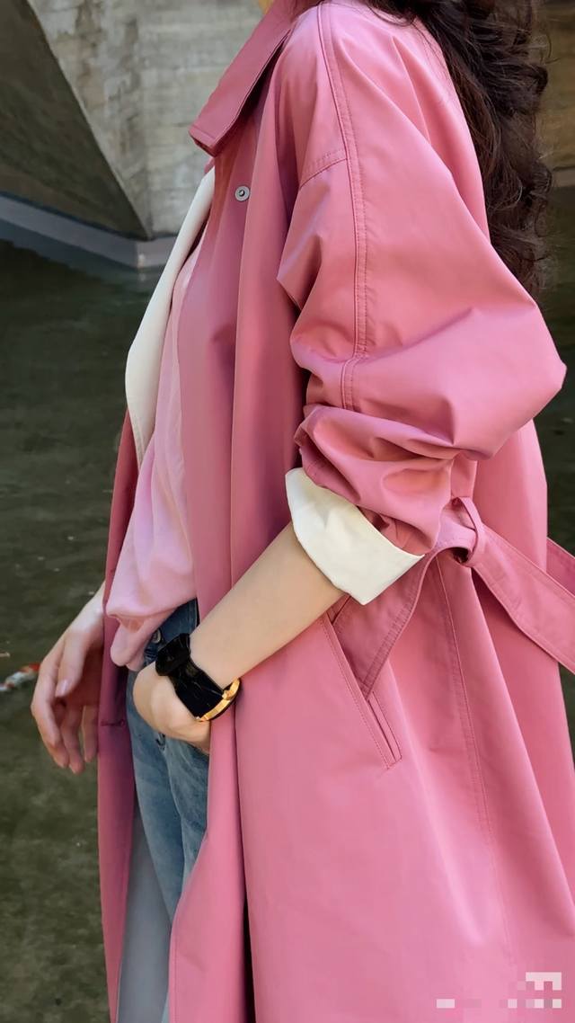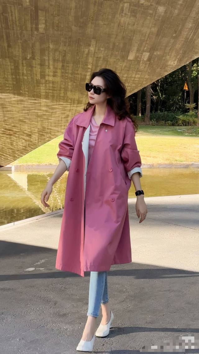 Minimalist big brand windbreaker raspberry pink waist long coat goddess style w
