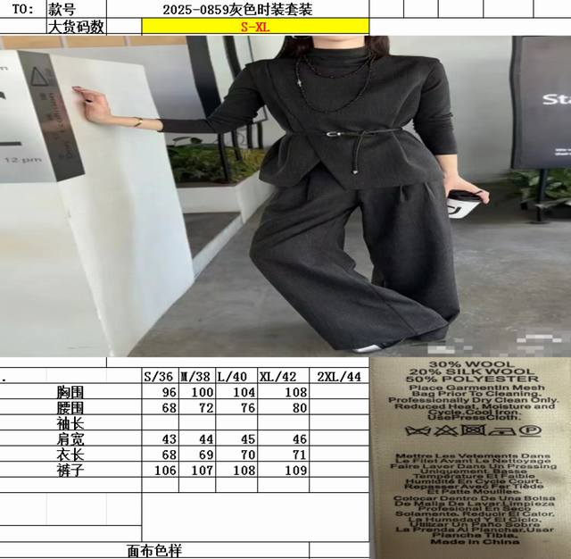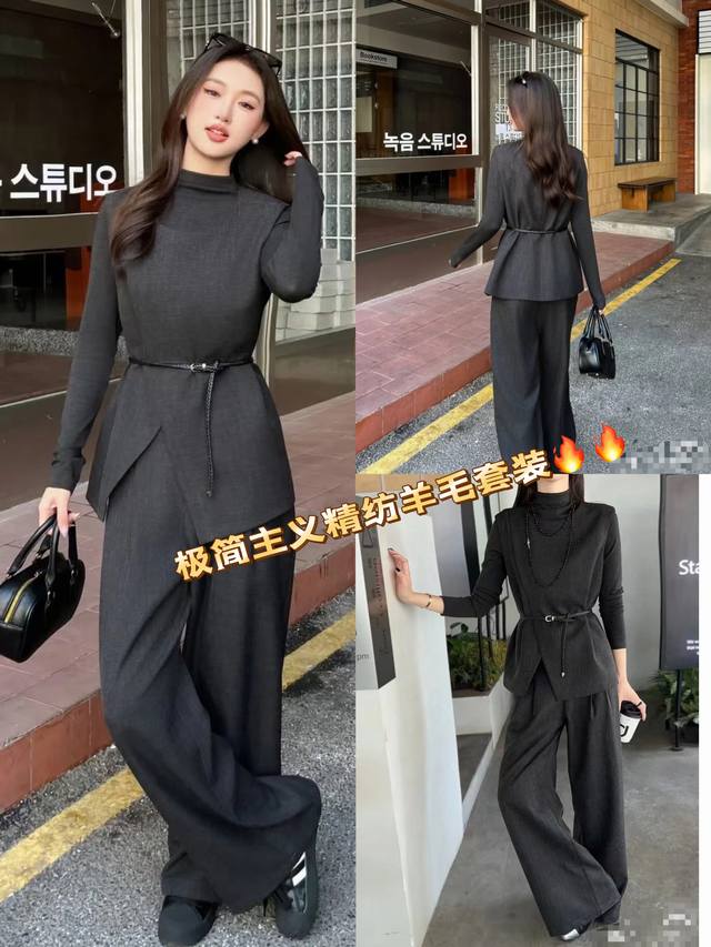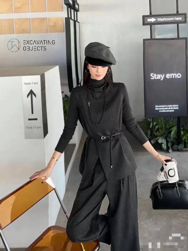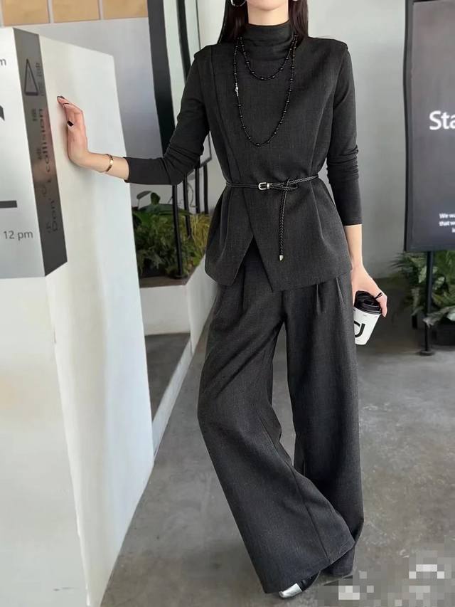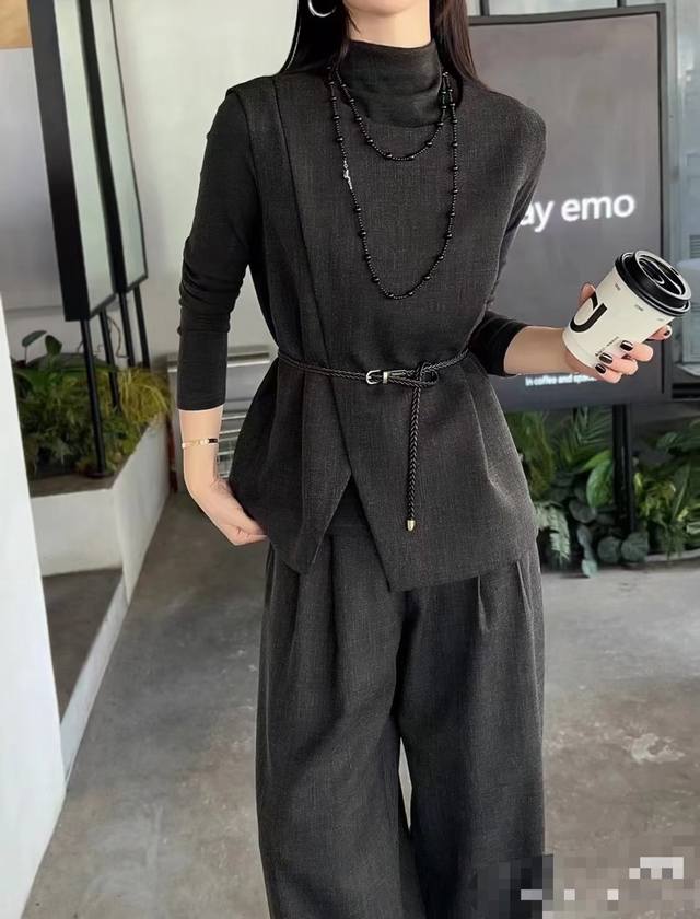 Minimalist style suit Salty light mature style High-grade worsted wool irregular vest wide-leg pants suit delivery belt High-grade dark gray Smlxl