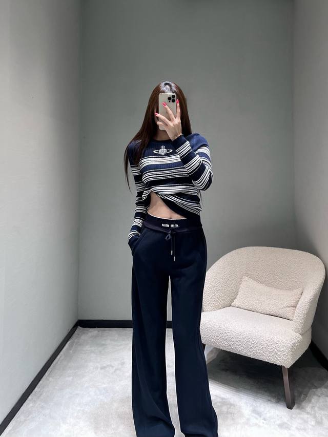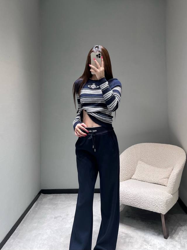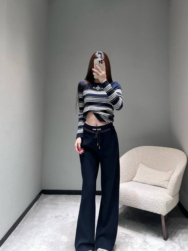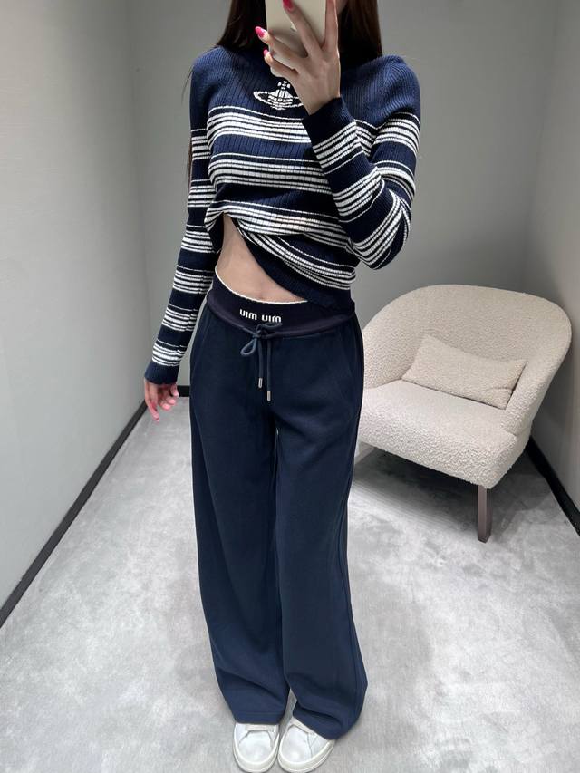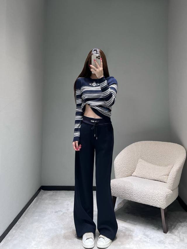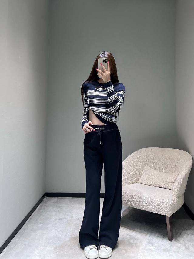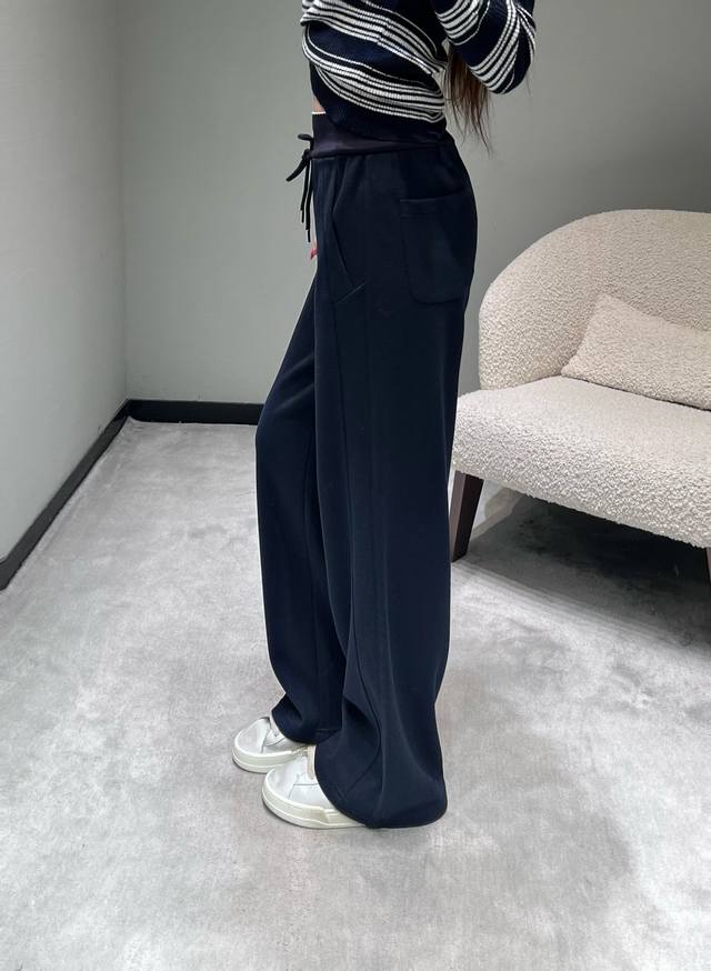 Miu* 2025Fw Autumn/Winter Collection Letter Wide-Leg Casual Pants. Crafted from premium fabric, these pants are soft and skin-friendly, offering excellent drape and breathability. The wide-leg design flatters the legs while creating a relaxed and stylish vibe. The high-waisted drawstring design accommodates various waist sizes, and the iconic "Miu" label adds a touch of sophistication. Sml