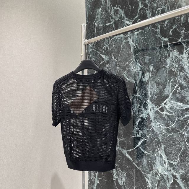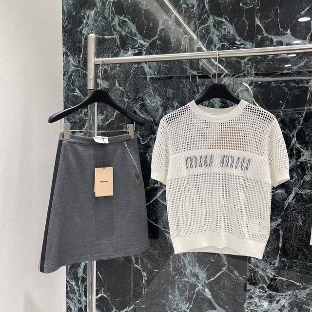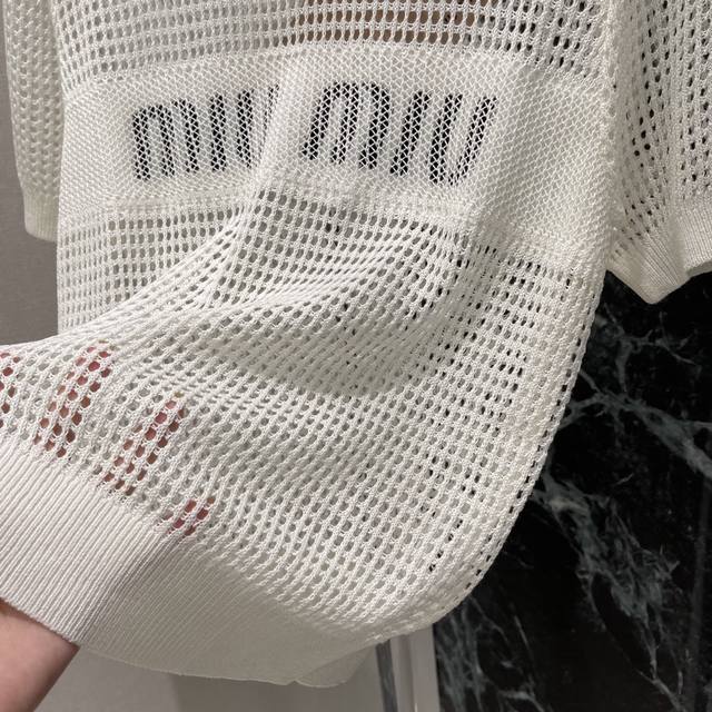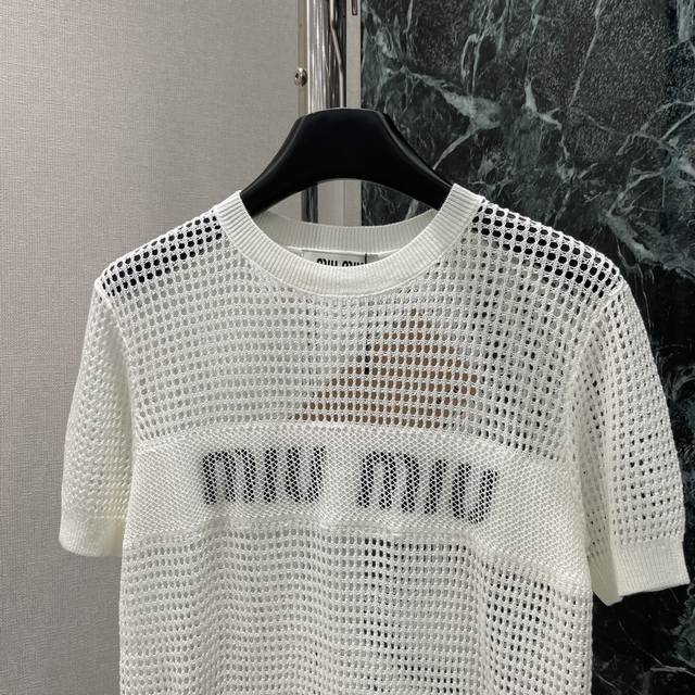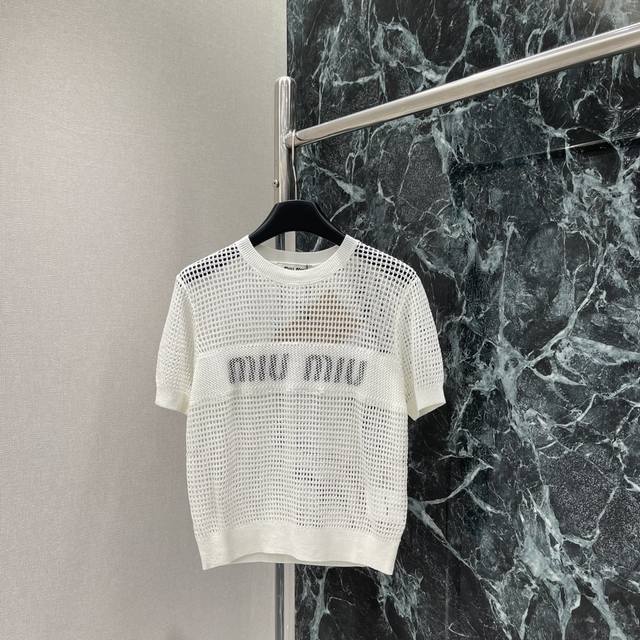 Miu 25 Early Autumn new hollow knitted short sleeves are decorated with iconic letters on the front, adding unique colors and brand iconic elements to easily create a variety of combinations, highlighting the classic fashion style and presenting a practical style. Two colors Sml