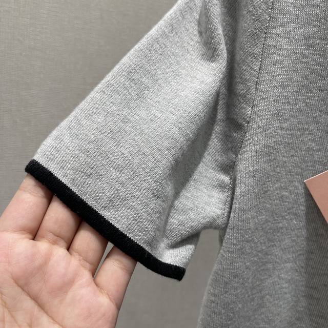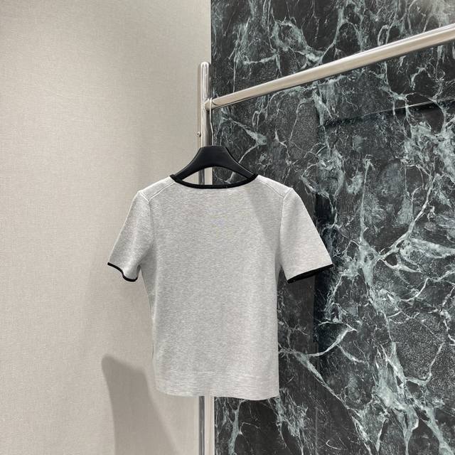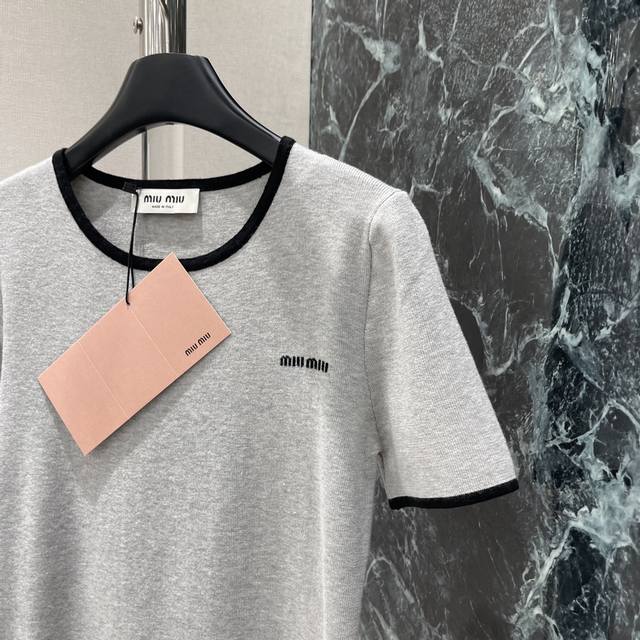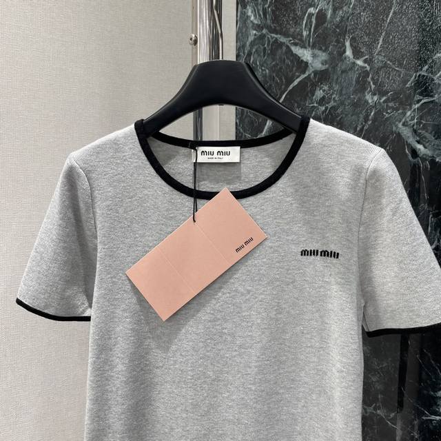Miu 25 Early Autumn new style contrast color round neck short sleeve round neck design with contrast color edge small logo on the chest simple and generous all-match style does not pick age and skin color upper body suitable for age-reducing fashionable style. One color Sml
