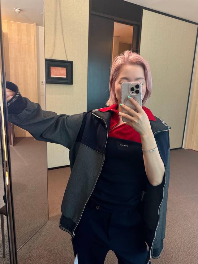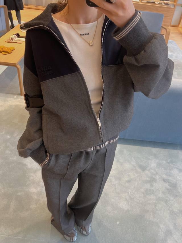 Miu 25 Early Autumn new style Maillard color stitching zipper jacket Customized
