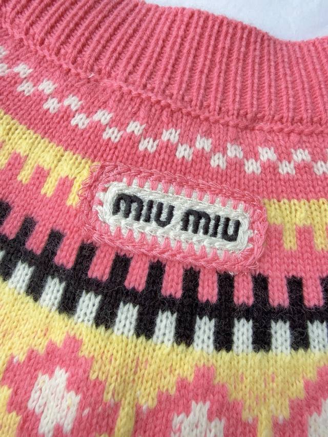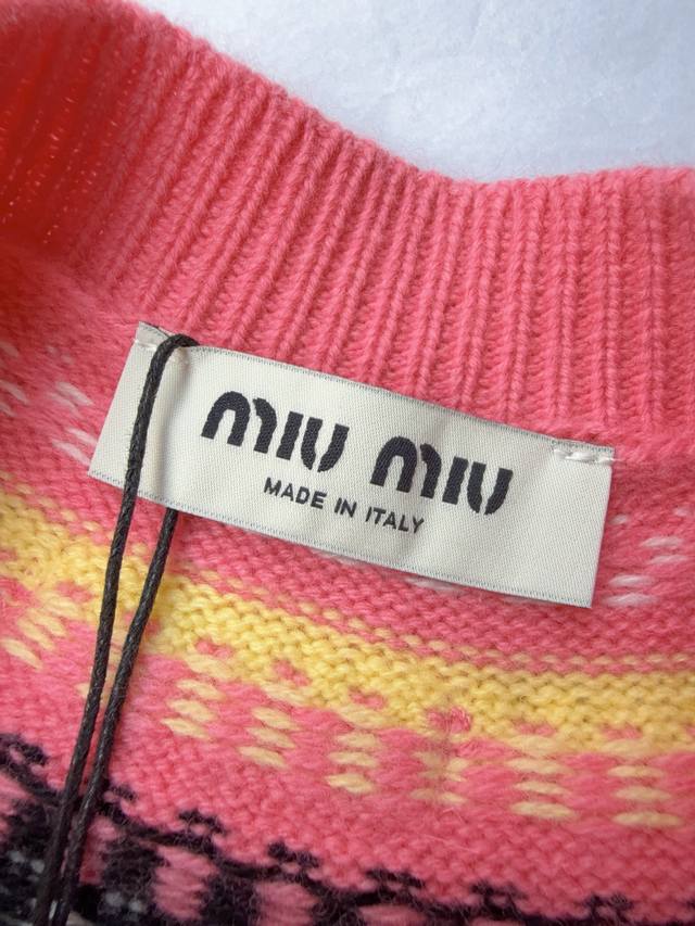 Miu 25 Fall/Winter New Color-Blocked Plaid Logo Letter Wool Cardigan - Available Now! This wool cardigan features a classic Scottish pattern that elevates its lines and texture, while the seamless construction evokes craftsmanship, combining traditional charm with modern technology. Available in sizes 36, 38, and 40 (