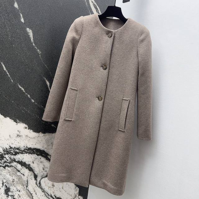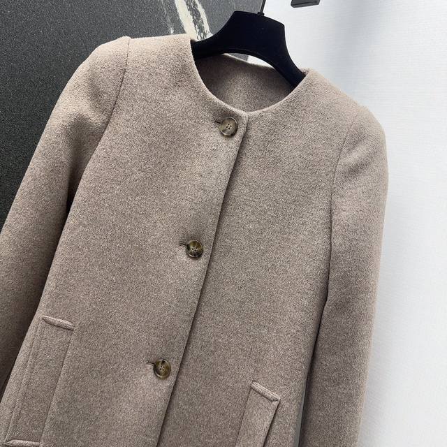 Miu 25Ss autumn and winter new arrival classic single-breasted round-neck wool coat. The wool fabric is very high-end and easy to grasp the Korean temperament style. The simple tailoring highlights the texture of the fabric. Wear it like a Korean heroine, gentle and delicate. The upper body shows an elegant posture. Whether it is daily travel or business negotiation, it will make you the focus. It is definitely a classic that you can't give up in winter. Sml S size: chest 92, length 95