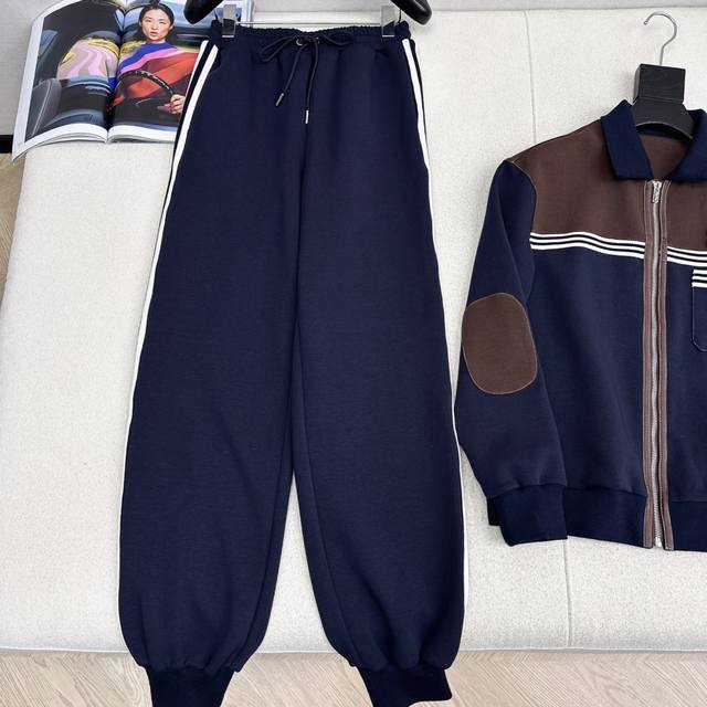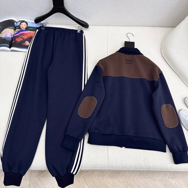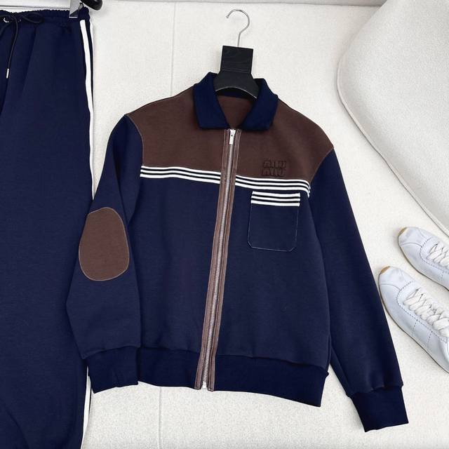 Miu 25Ss Fall/Winter Newest Patchwork Casual Set: Lapel Casual Jacket + Elastic Waist Casual Pants. A super comfortable set, versatile and easy to wear whether paired together or worn separately. Casual sporty style, timeless elegance, never going out of fashion, a classic set. Available in sizes S, M, and L. Size S: Shoulder width 47cm, Bust 96cm, Jacket length 60cm, Waist 64cm, Hips 98cm, Pants length 103cm. Manual measurement may have errors. DDD