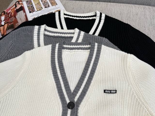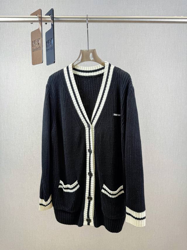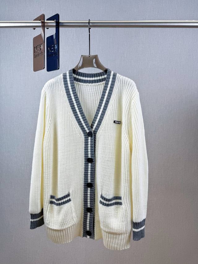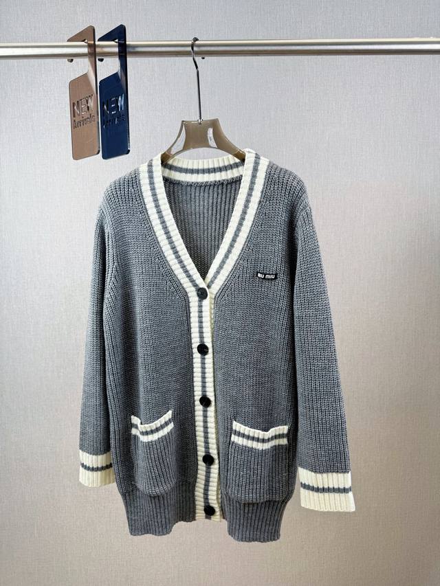 Miu | Contrast Logo Cardigan 30% cashmere, 70% wool Sleek and refined, oversize