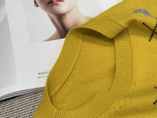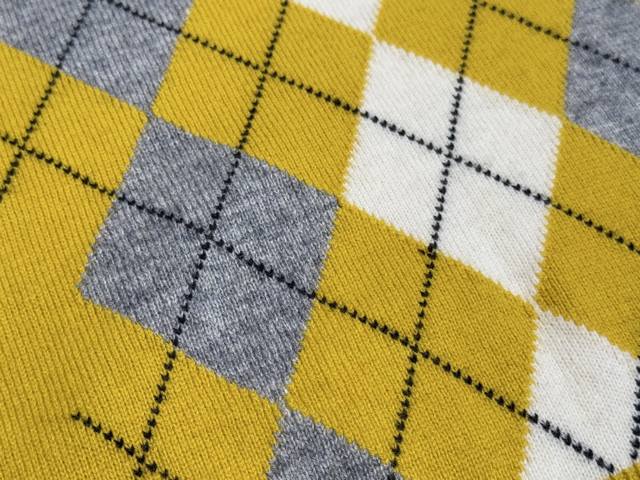 The diamond pattern has multiple contrasting colors, forming a collision with the solid color of the sleeves, which is fashionable and age-reducing, enriching the design layering and adding a college youthful atmosphere