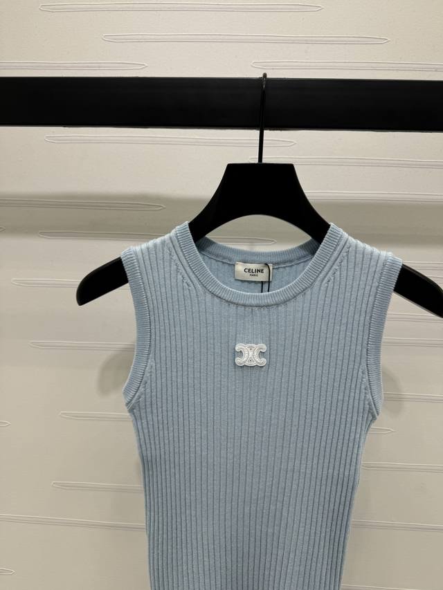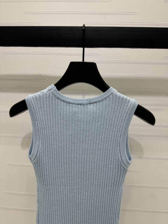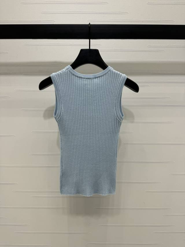 Miu Mi summer new round neck sequined knitted short sleeves, the fabric is light and breathable, embellished with shiny beads, and the small logo design on the chest is exquisite. 36 38 40 sizes are available, T226B