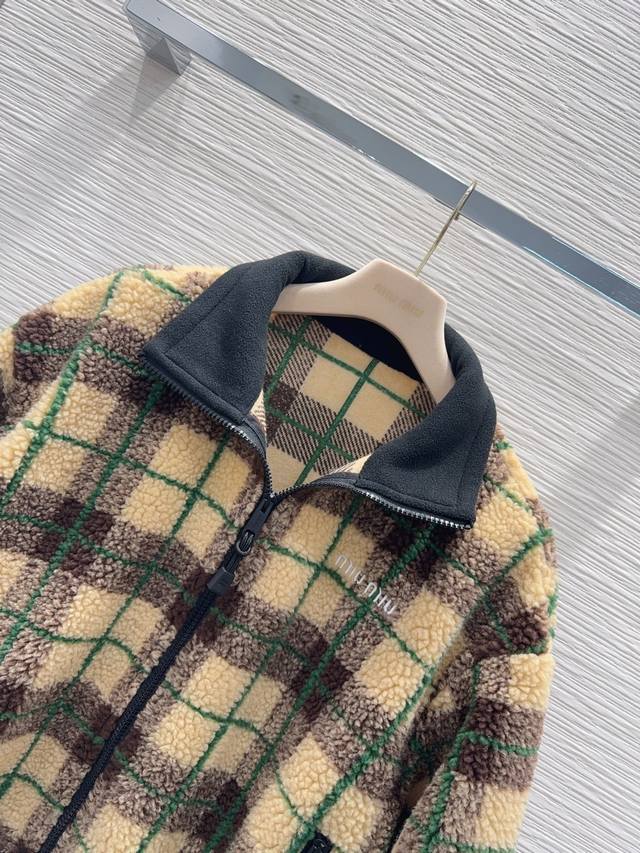 Miu Mi*2025Fw New Coat. The comfortable lamb's wool fabric meets both comfort and style needs, making it suitable for every everyday outfit. Sizes: S (Bust 122cm, Leg Circumference 118cm, Shoulder Width 55.5cm, Back Length 51cm, Sleeve Length 61.5cm, Cuff Length 32.5cm) (DDD)