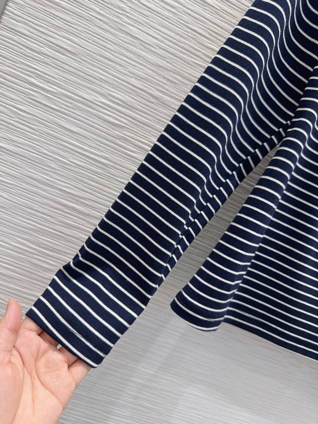 Miu Mi*'s new 2025Fw classic striped base shirt is soft and smooth. A classic, age-defying piece! Stylish and stylish! The flattering fit is versatile and flattering! A must-have for every woman. Stunning texture and impeccable workmanship! In stock now ! Sml orders now! Shoulder Width 39mm, Chest 88mm, Center Back Length 57mm, Sleeve Length 61mm,
