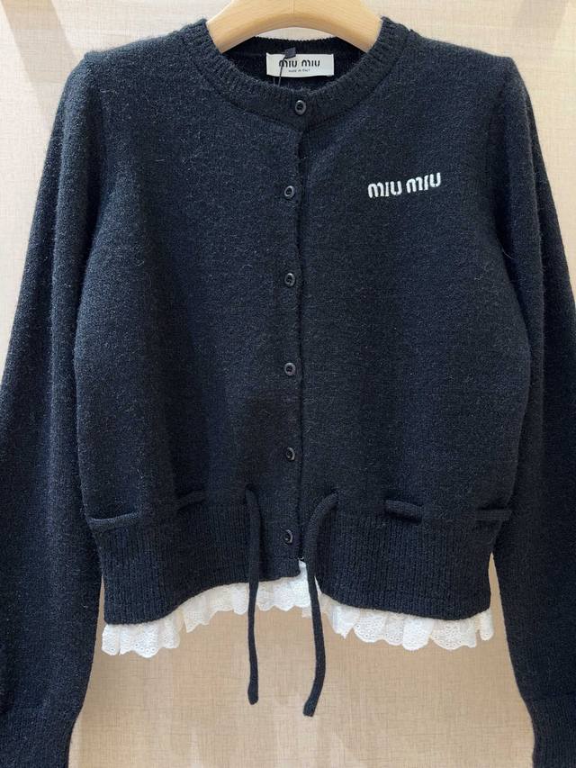 Round neck, single-breasted design, with white lace at the hem and cuffs, for a sweet touch. Drawstrings on both sides of the hem allow for adjustable fit and create different looks.