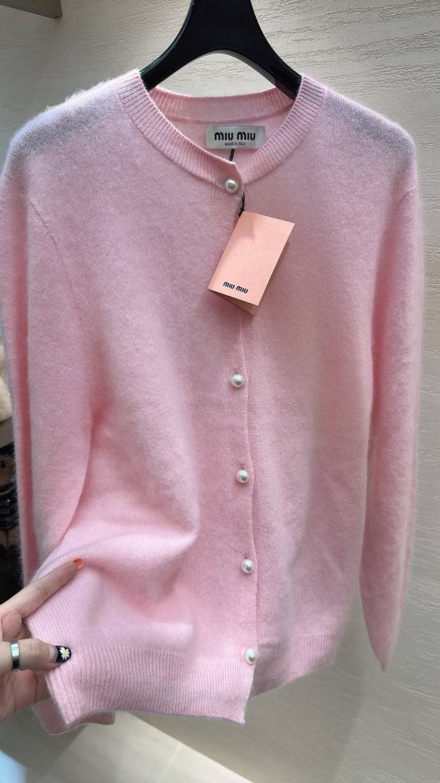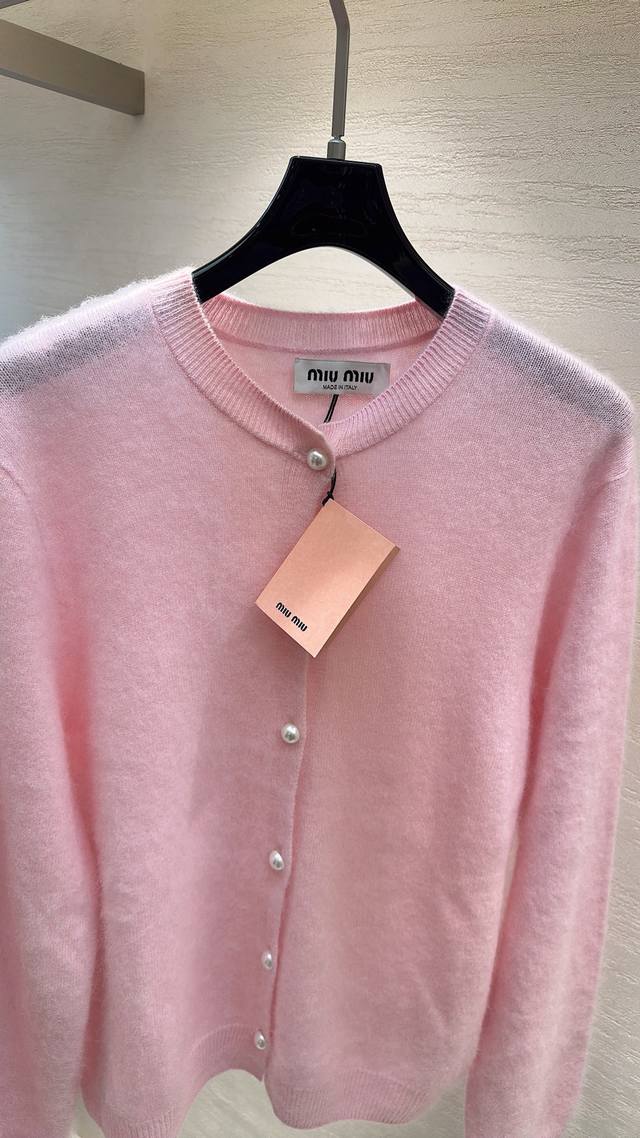 Miu Miu sheep wool and cashmere cardigan, perfectly capturing both gentleness and playfulness! The plush texture is incredibly soft, and the pearl buttons are delicate and sweet. A must-have for autumn and winter, it'll make you look like a sweet, youthful girl. Anyone who wears it will be the epitome of charm! Sizes S, M, D, D