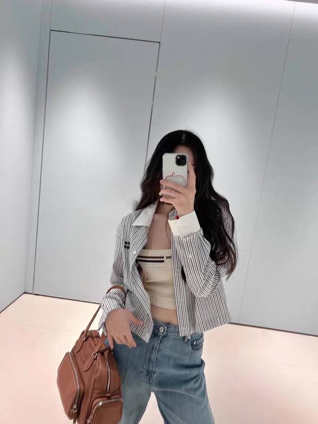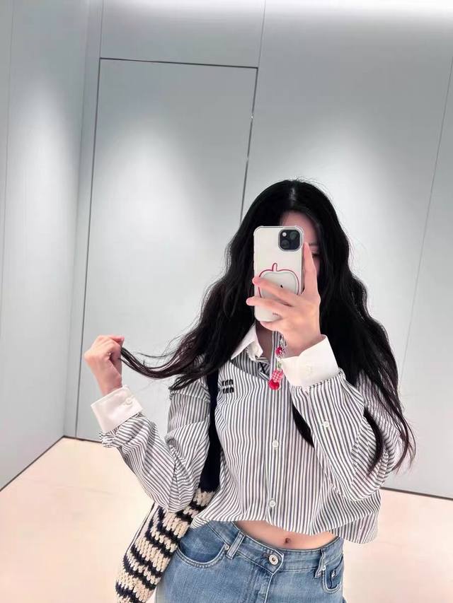 / Miu series 2025 new early autumn striped long-sleeved shirt one color three size