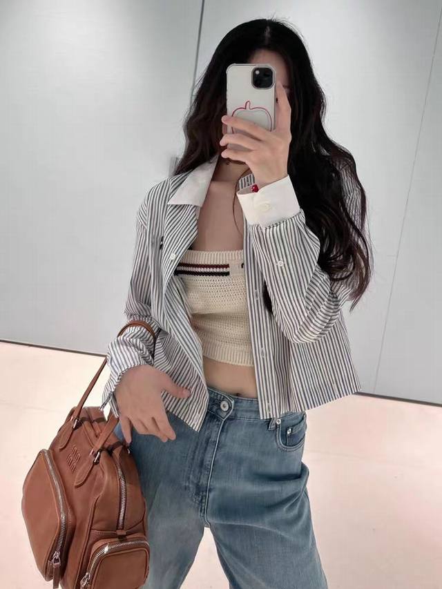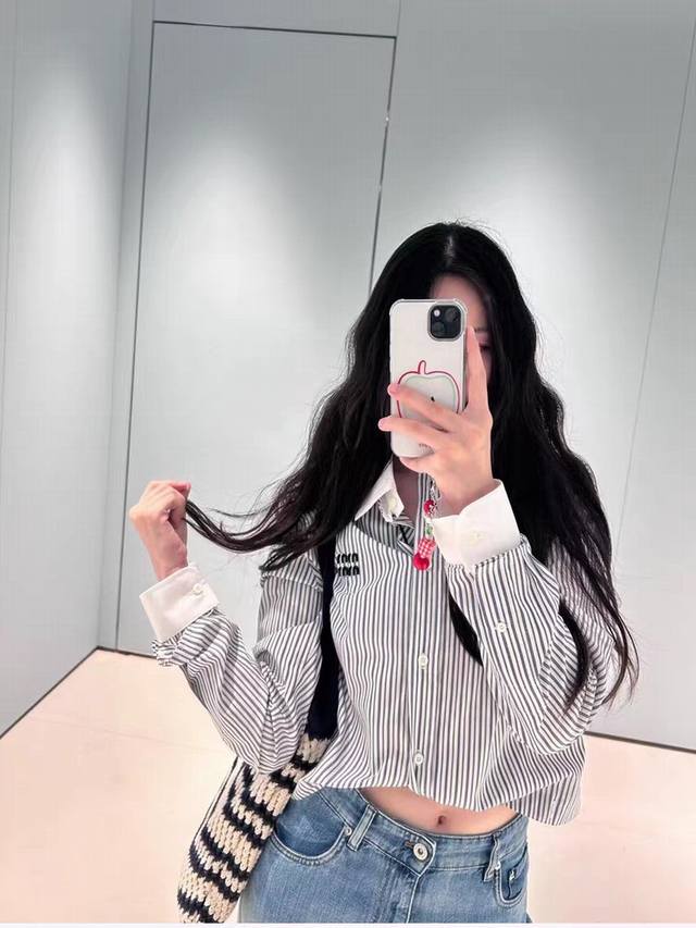 Miu series 2025 new early autumn striped long-sleeved shirt one color three size