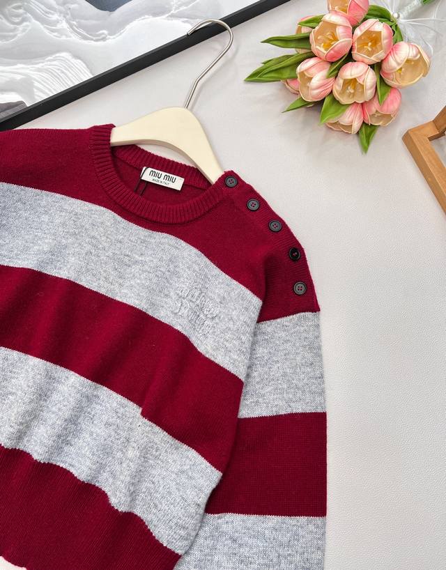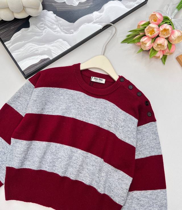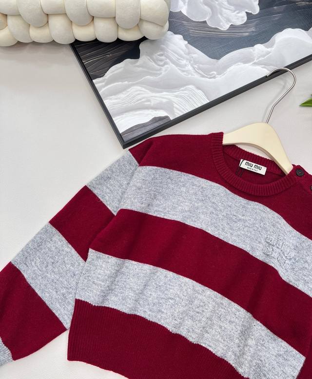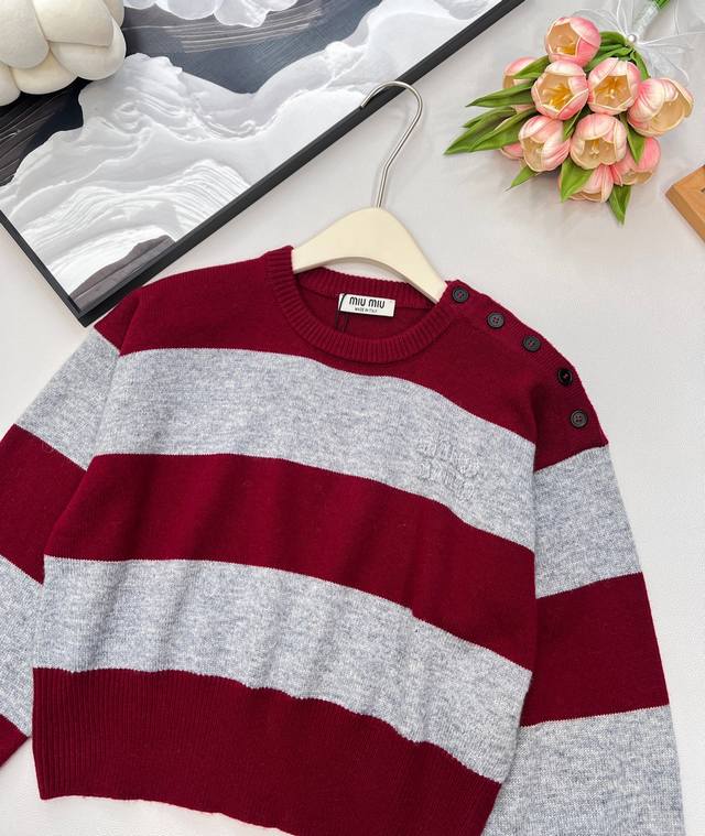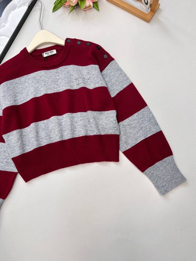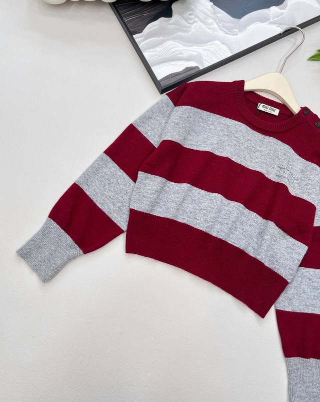 Miu striped contrasting short sweater is here to blow up the scene! 2025 early a