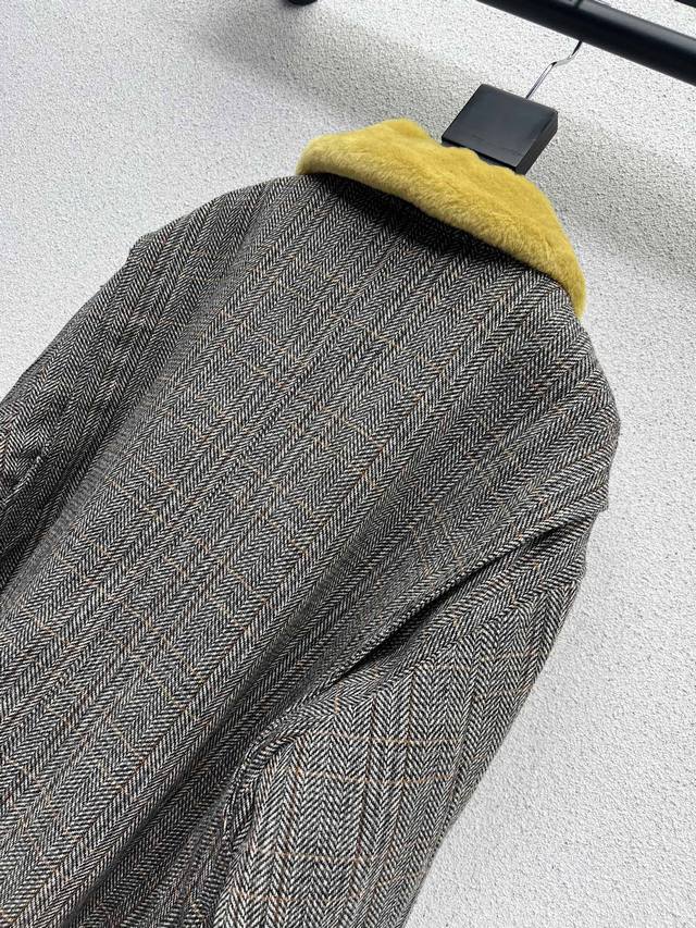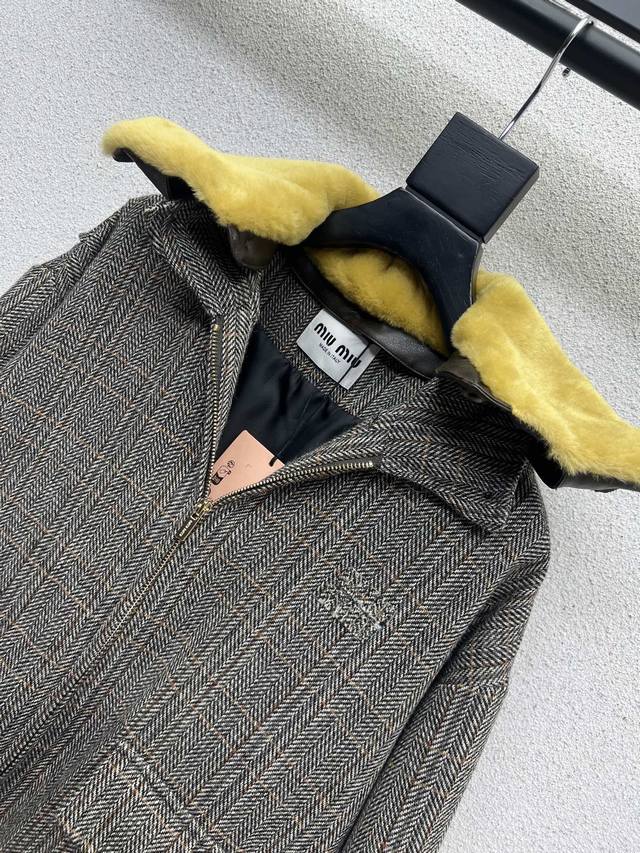 Miu wool coat with fur collar, Yb 1:1 custom-made, with excellent texture and high-end craftsmanship, perfectly showcasing the brand's style and charm. A versatile and elegant everyday essential, it exudes a trendy and fashionable feel. High-quality sizes S, M, D, D.