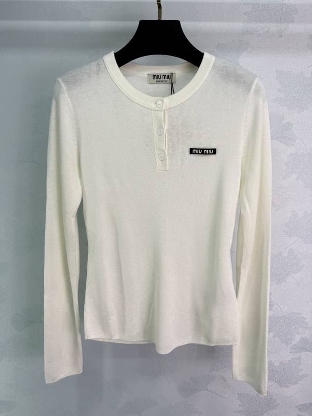 Miu*2025 early autumn new long-sleeved top with a half-open collar and button-down design for easy adjustment. Solid color base and one-side logo highlight the brand's high-end style. Rich design layering makes it easy to wear for daily travel or leisure entertainment. Fashionable and loose. 4 colors and 3 sizes Sml