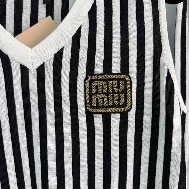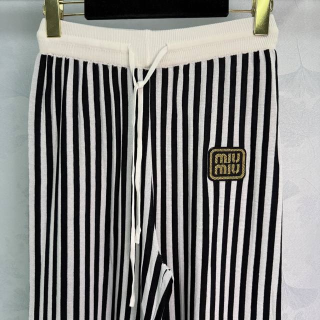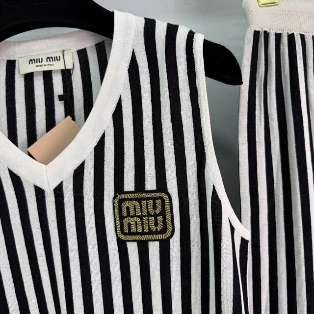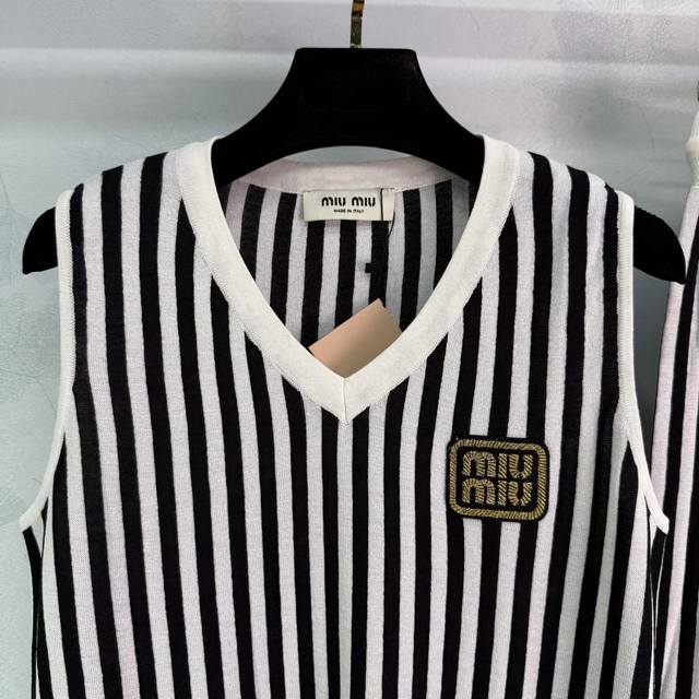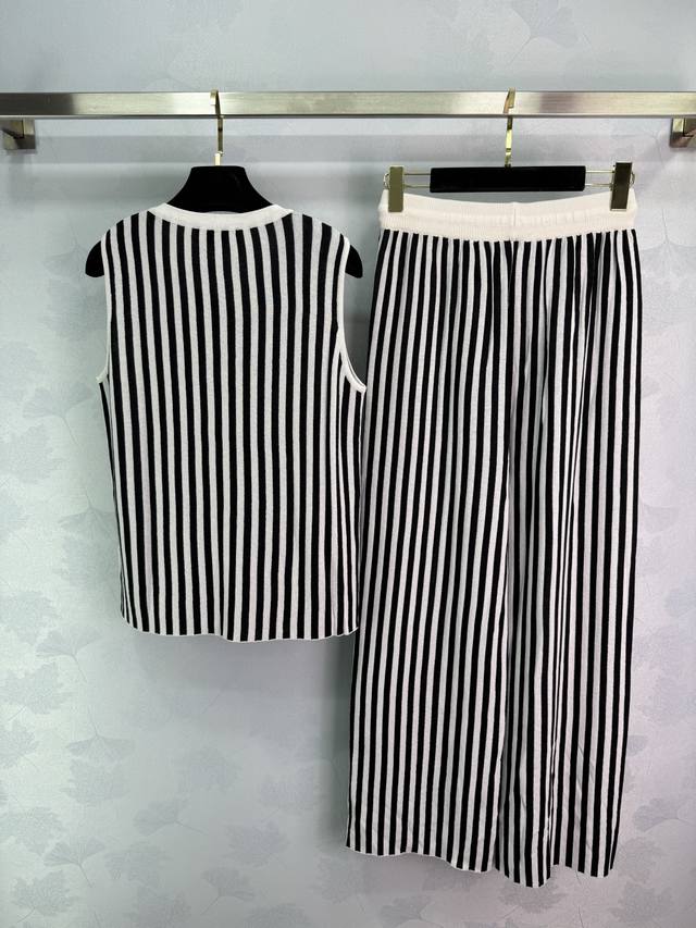 Miu*2025 Spring and Summer new black and white striped suit, V-neck vest + wide-leg pants, classic striped design with gold logo, age-reducing and relaxed, easy to wear in daily life! 1 color 3 sizes Sml T226B.