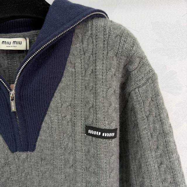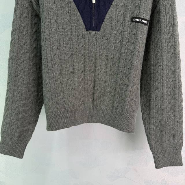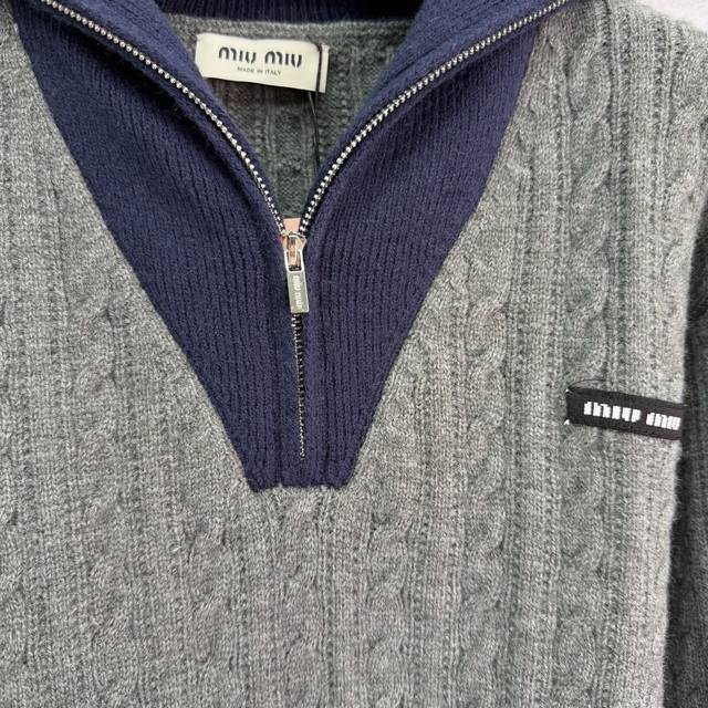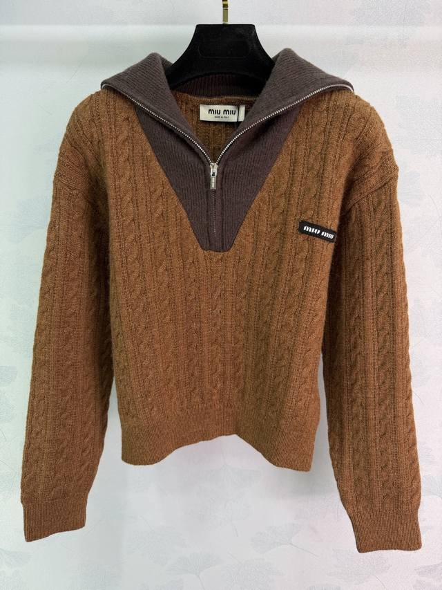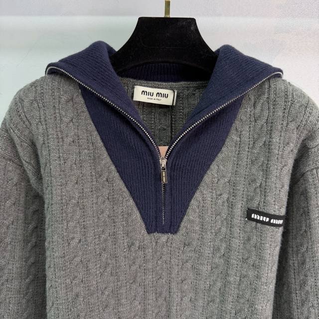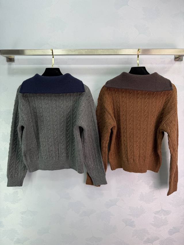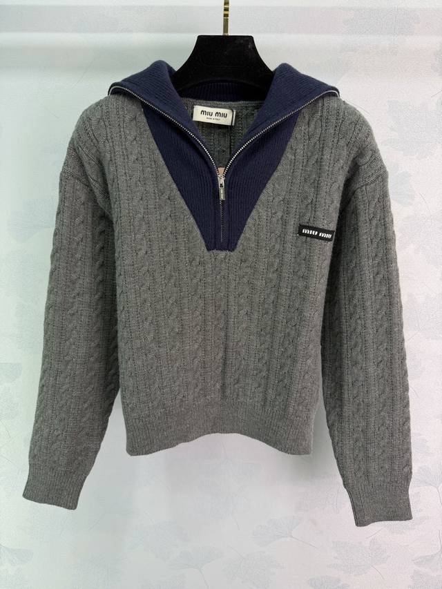 Miu*25 Autumn/Winter New Color-Blocked Sailor Collar Sweater, Soft and Skin-Friendly Wool Fabric, Excellent Warmth, 2 Colors, 3 Sizes S, M, L, T226B. DDD