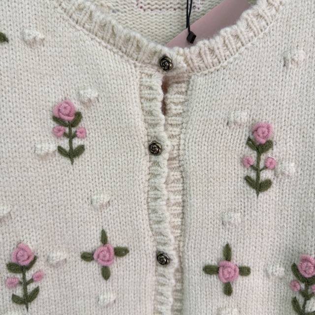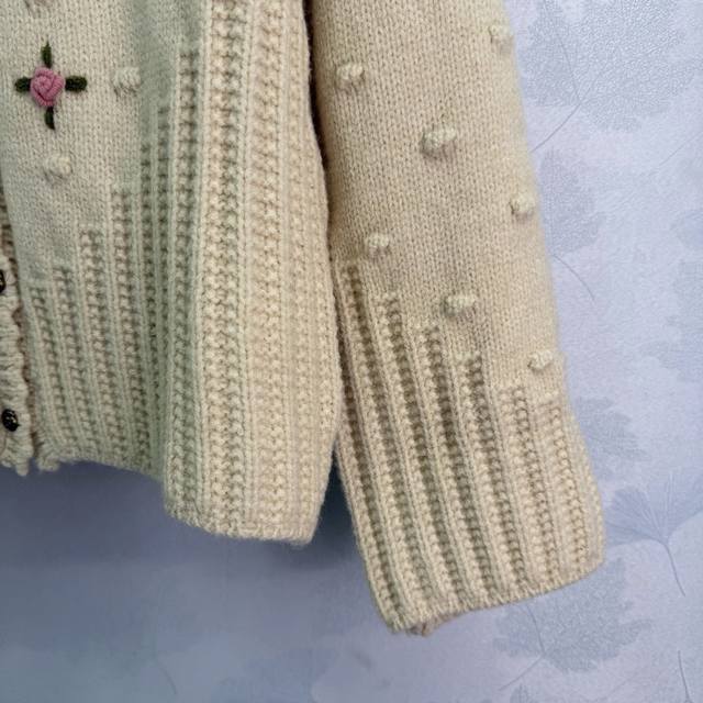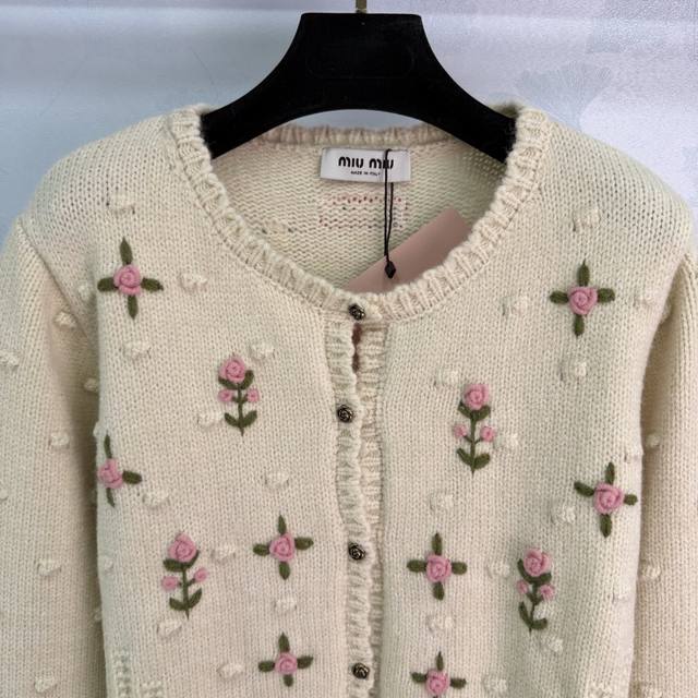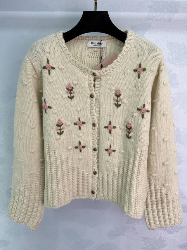 Miu*25 Autumn/Winter New Floral Embroidered Knit Cardigan. Soft knit fabric, comfortable and warm. Handmade 3D floral embroidery and vintage rose buttons exude French elegance. The structured shoulders flatter the figure, making it suitable for both work and leisure! 2 colors, 3 sizes: S, M, L, T226B. DDD