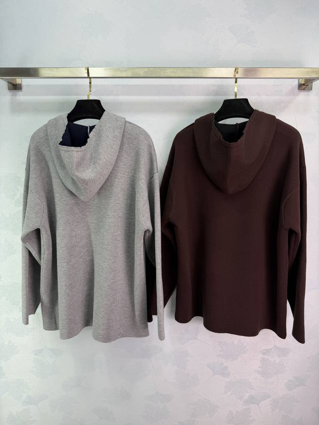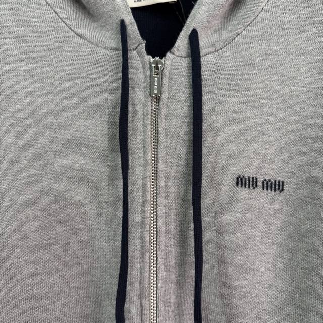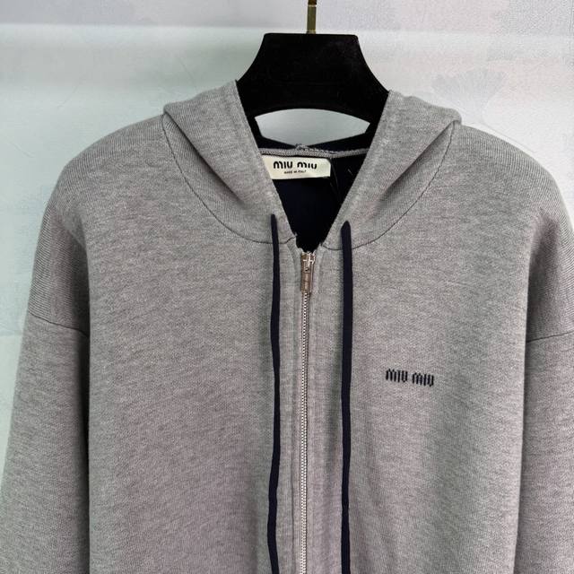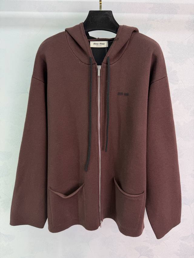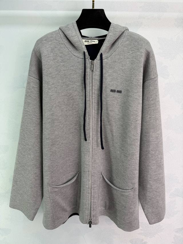 Miu*25 Autumn/Winter New Hooded Cardigan, made of double-layered wool, simple yet detailed. Features brand embroidery on the front, two large side pockets for practicality, and ribbed cuffs and hem for added comfort. Double zipper for easy on and off, casual yet stylish, perfect for everyday wear or vacations in autumn and winter. 2 colors, 3 sizes: S, M, L, T226B. DDD