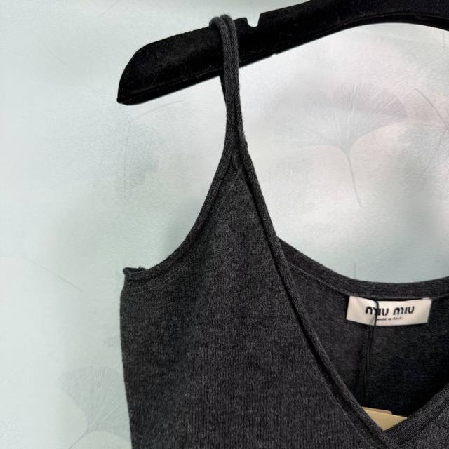 Miu*25 Autumn/Winter New Knitted Slip Dress. Soft and comfortable, the V-neck design flatters the neckline, and the back is full of detail. The dress length is just right, making it suitable for wearing alone or layering with a coat. Highly recognizable brand, elegant and fashionable, easily wearable for everyday casual occasions. 1 color, 3 sizes: S, M, L, T226B, DDD