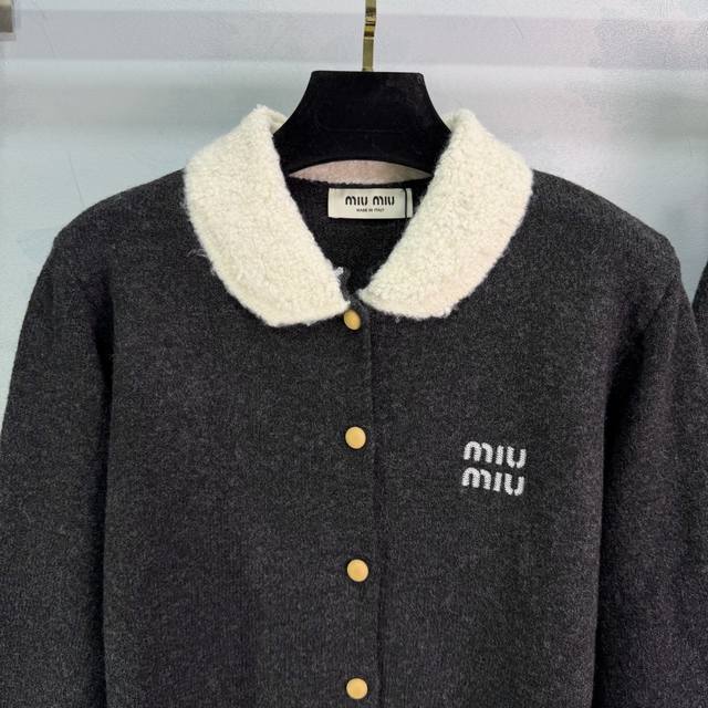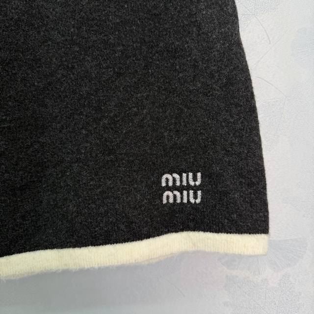 Miumi*Miumi's new high-end custom 100% wool yarn fabric, chest logo logo, contra