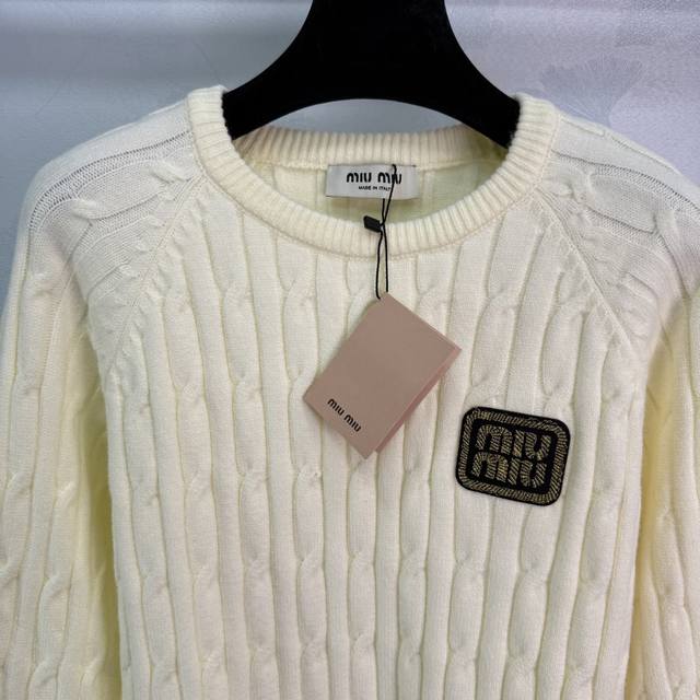 Miu*25 Early Autumn New Cable Knit Sweater with Classic Logo Badge Design on Che