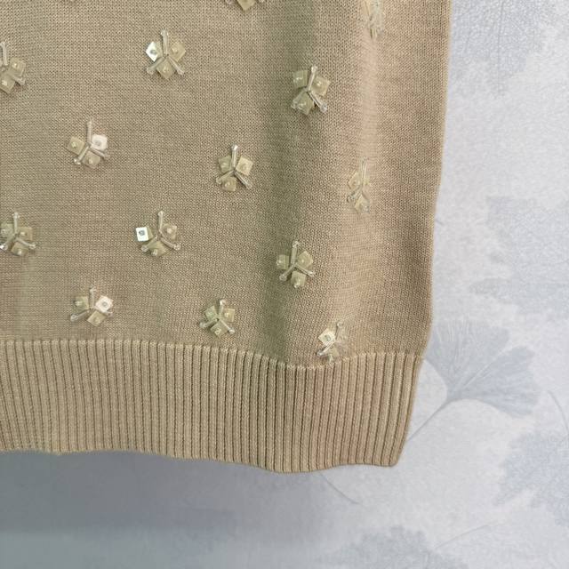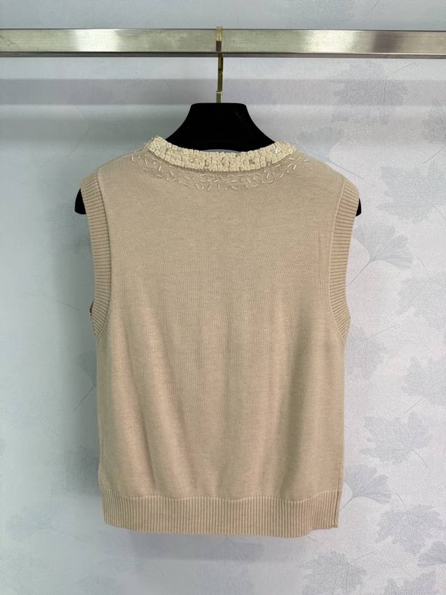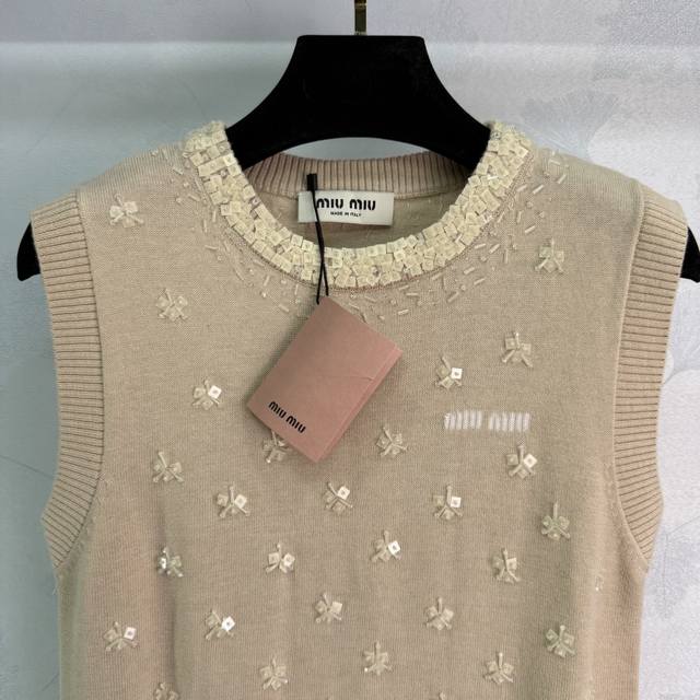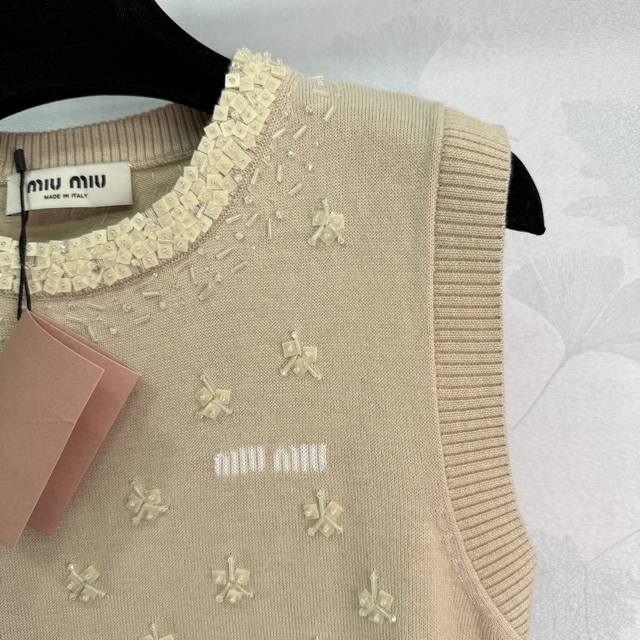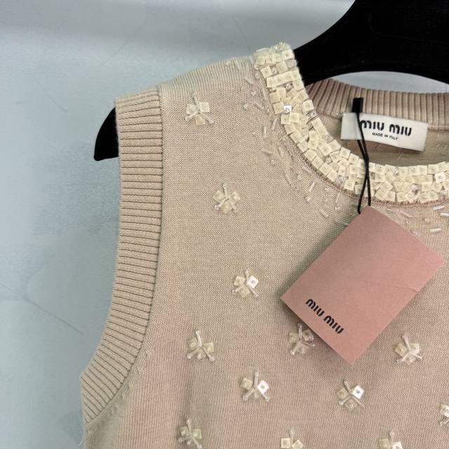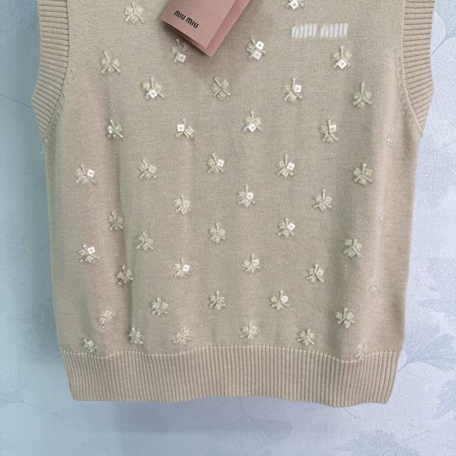 Miu*25 Early Autumn New Knitted Vest with Exquisite Floral Embroidery, Lace Trim Neckline, 100% Wool Material, Soft and Comfortable to the Touch, Full Coverage of Floral Embroidery on the Chest, Presenting a Fresh and Elegant Floral Pattern, Slim Fit! 1 Color, 3 Sizes: Sml T226B