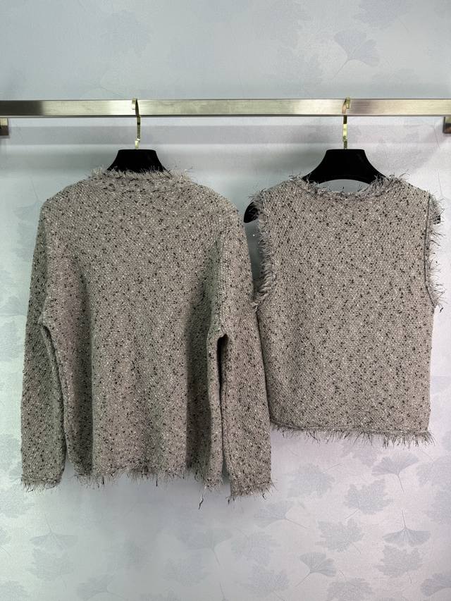 Miu*25 Early Fall new fringed cardigan and vest two-piece set. Soft and comforta