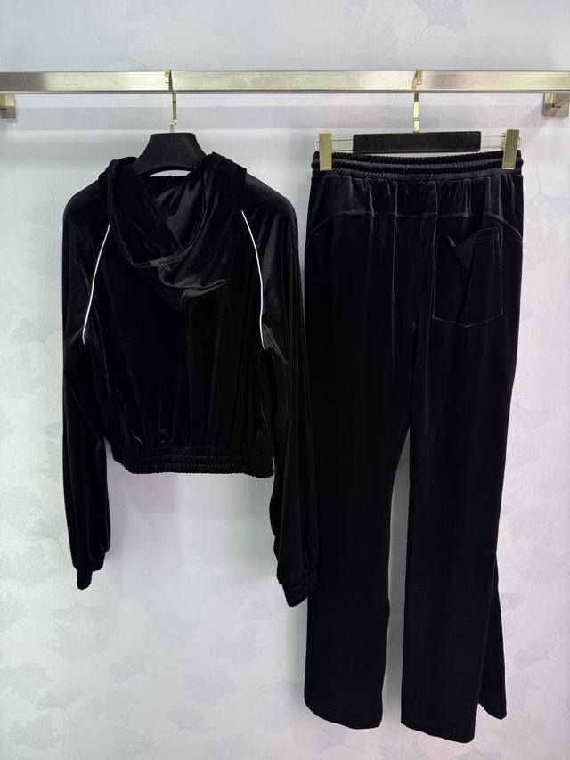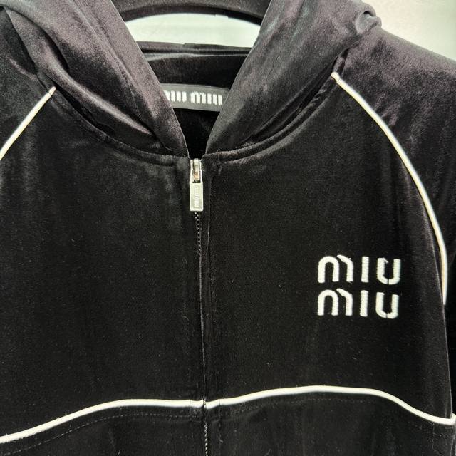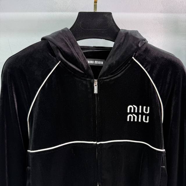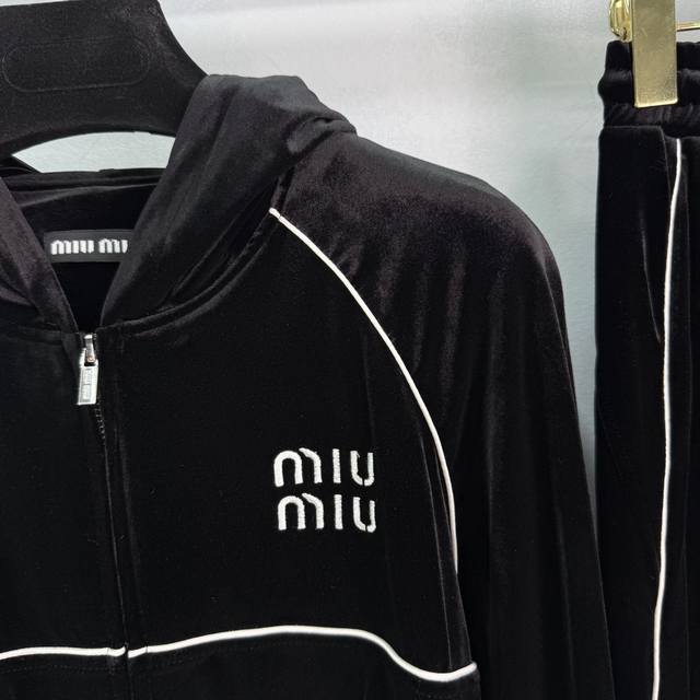 Miu*25 new casual velvet sports suit, custom-made fabric, hooded jacket, casual trousers, classic Miu monogram embroidery, just the right amount of looseness, clean and neat tailoring, even without extra gimmicks, easily reveals a noble temperament. Simple and exquisite details highlight unique taste and style, creating a relaxed and comfortable daily wear. Solid color, size 3 Sml T226B