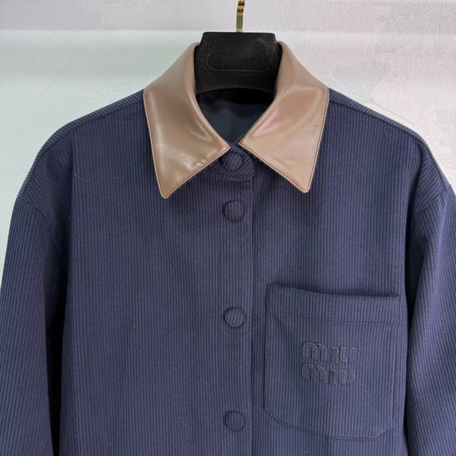 Miu*25 new corduroy leather lapel shirt jacket. This Miu-themed outfit is perfec