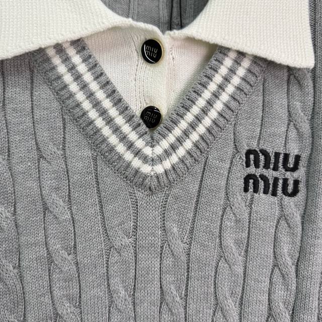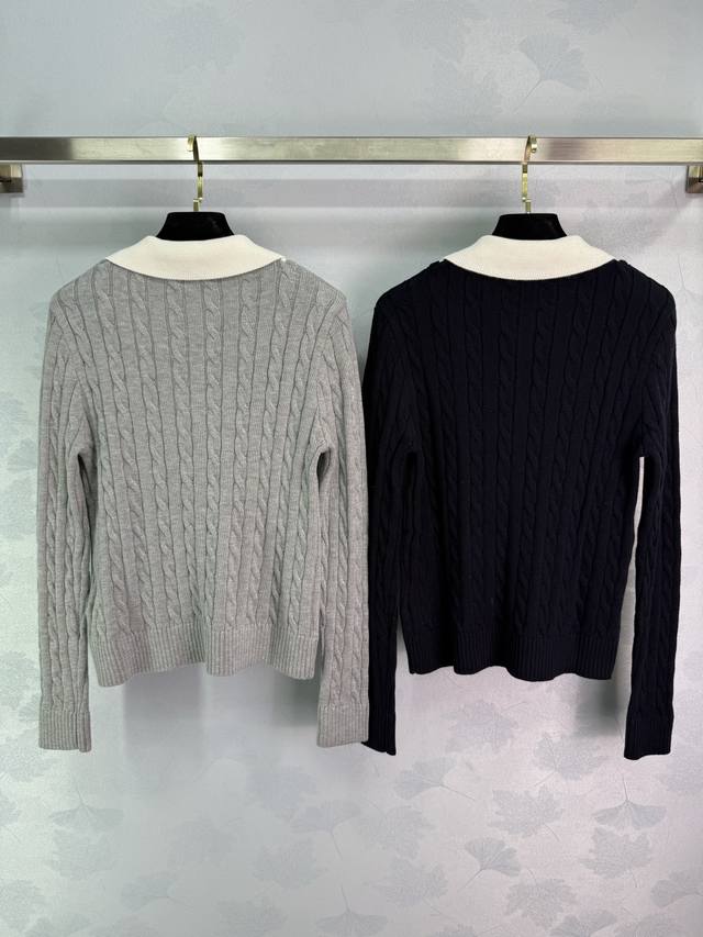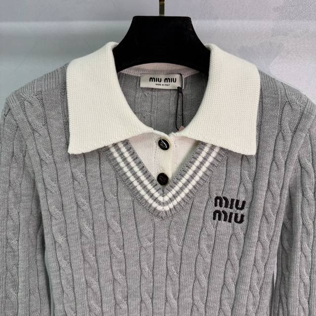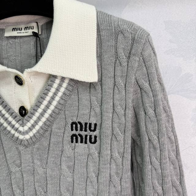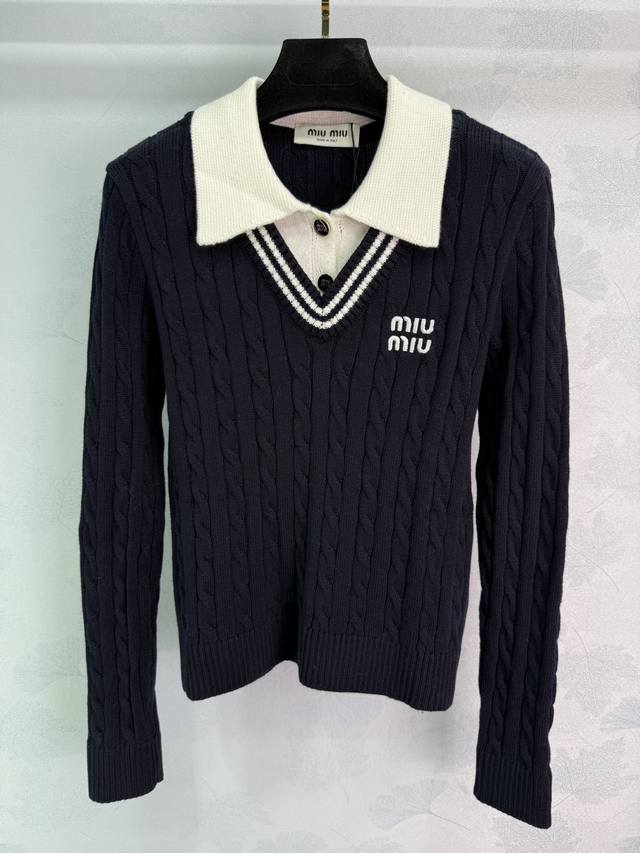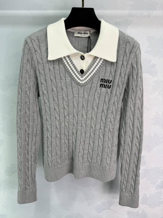Miu*25 new fall/winter classic two-piece sweater with white lapel and cable knit