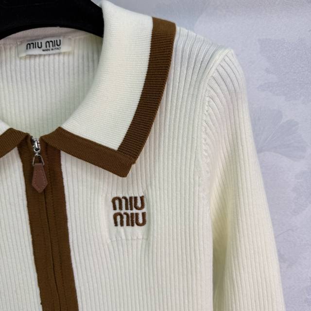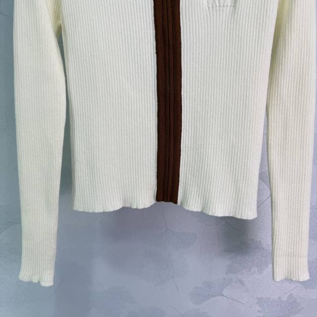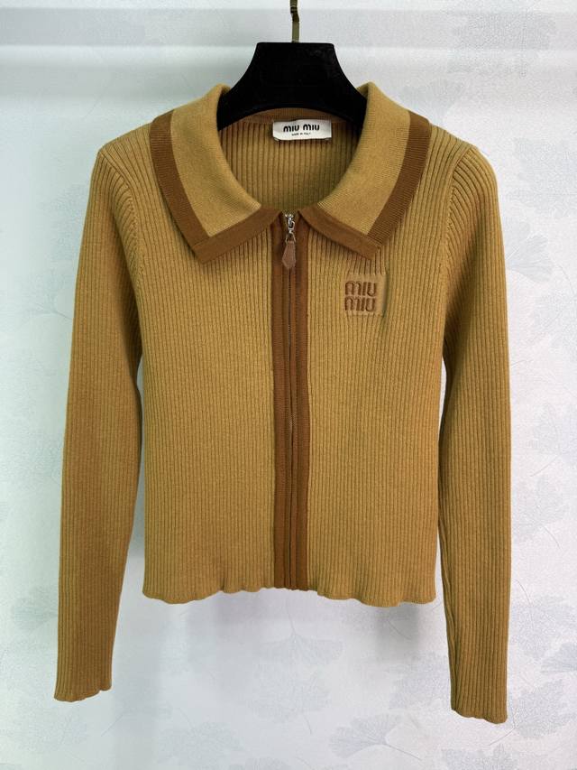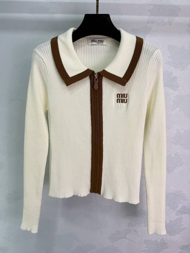 Miu*25's new early fall knitted cardigan features a lapel design with a zipper and a logo embroidered on the chest. Slimming and understated, it showcases refined elegance and a wide range of stylish combinations, showcasing the brand's signature style. It's effortlessly stylish and effortlessly chic, with a relaxed, elegant feel. Available in 2 colors and 3 sizes (Sml T226B