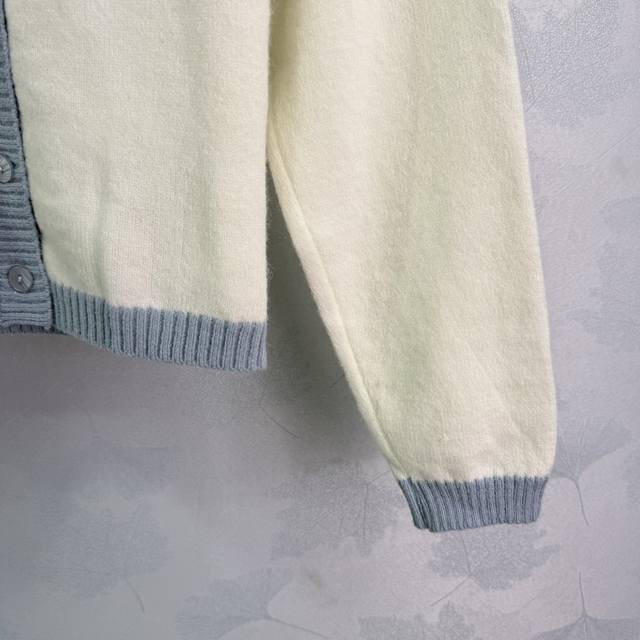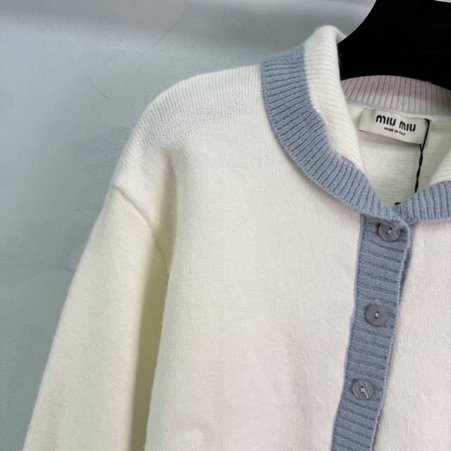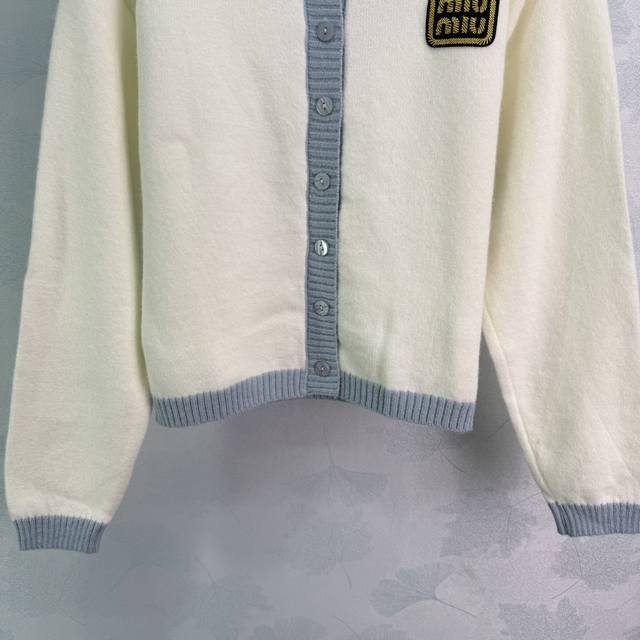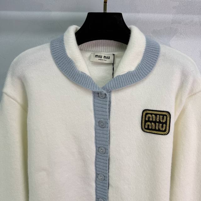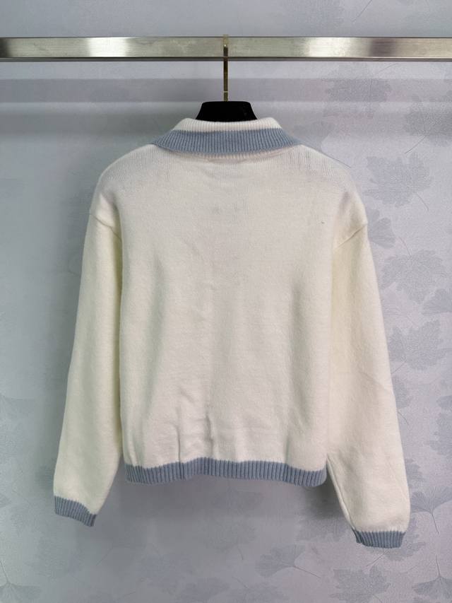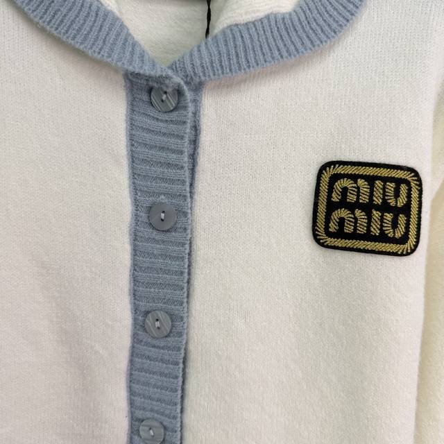 Miu*25's new early fall knitted cardigan features a light blue collar and gold logo embroidery on the chest. This simple yet elegant white cardigan is paired with a light blue collar for a refreshing and elegant look. This regular fit is versatile and playful, making it youthful and youthful. Perfect for everyday outings or gatherings! One color, three sizes. Sml T226B