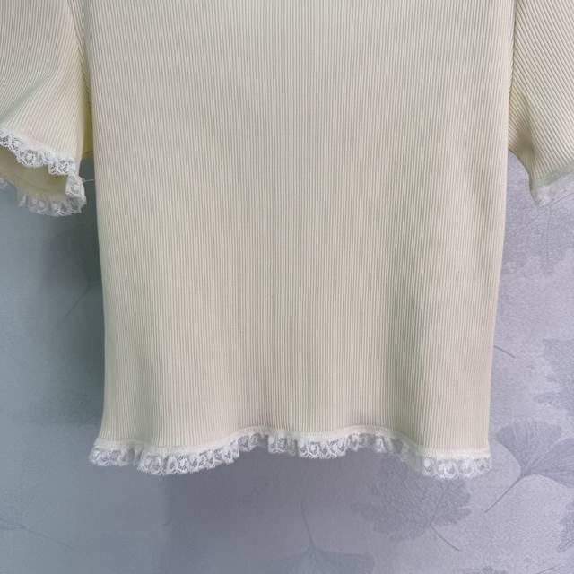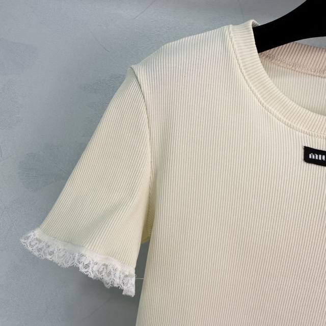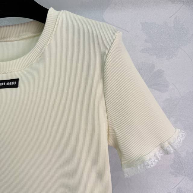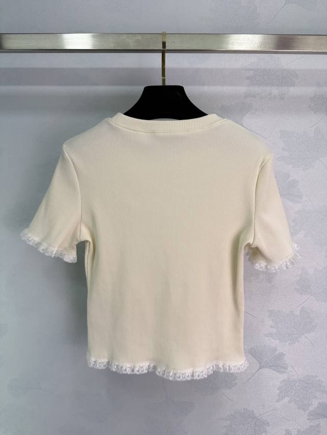 Miu*25Ss Summer new short-sleeved lace design is cute and generous, very recognizable, slim fit, super versatile. As a single item that needs to be worn all year round, it can be worn alone or as an inner layer. The style is very age-reducing, layered, classic and versatile. 1 color 3 sizes Sml