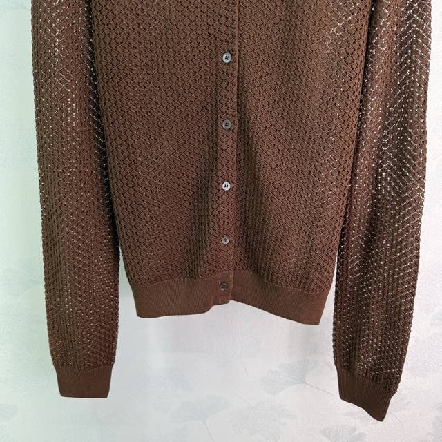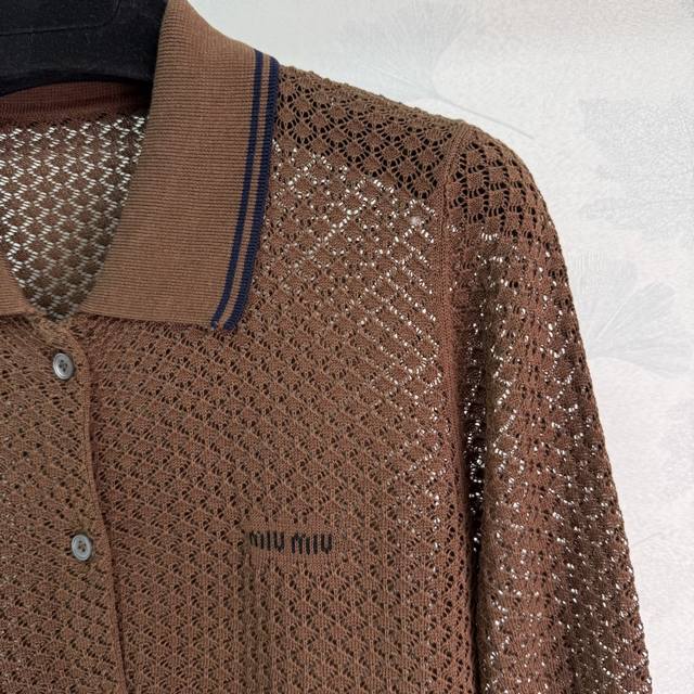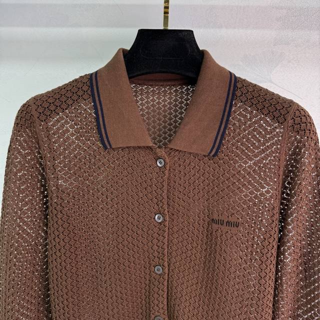 Miumi* 2025 Early Fall new hollow knit cardigan! Custom-woven silk and linen yar