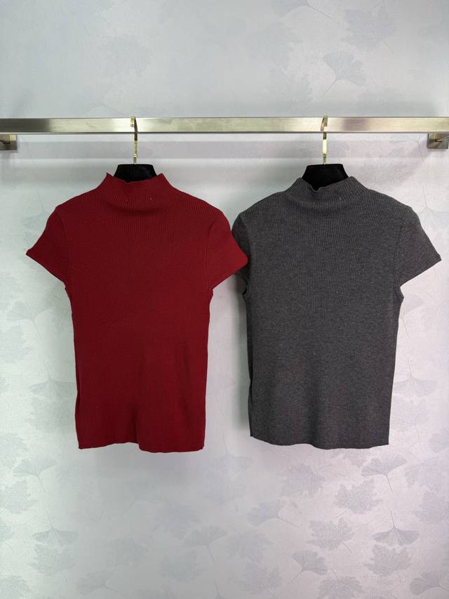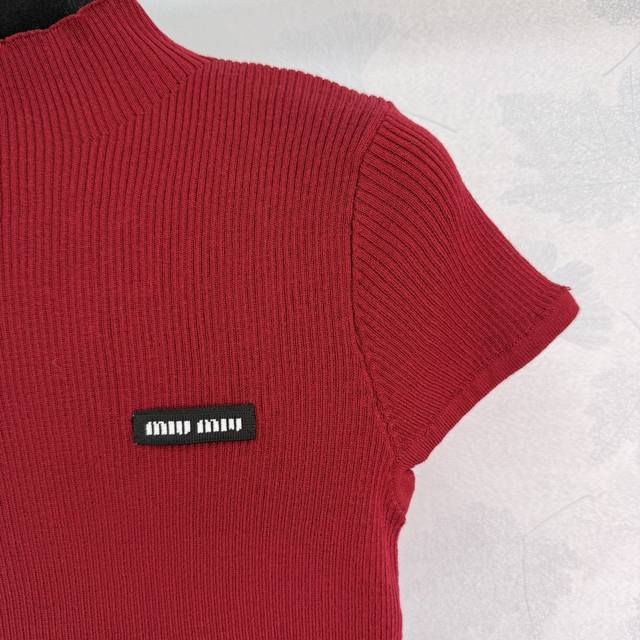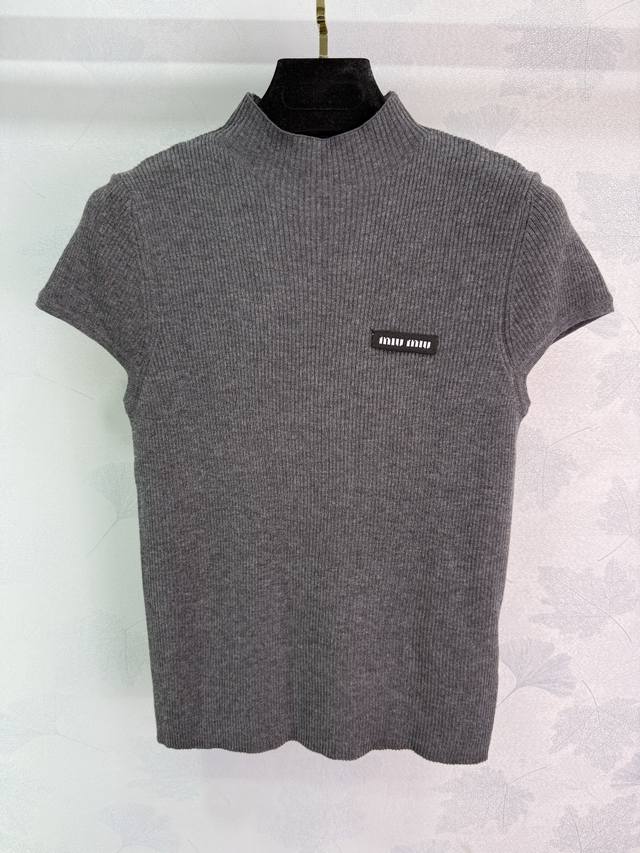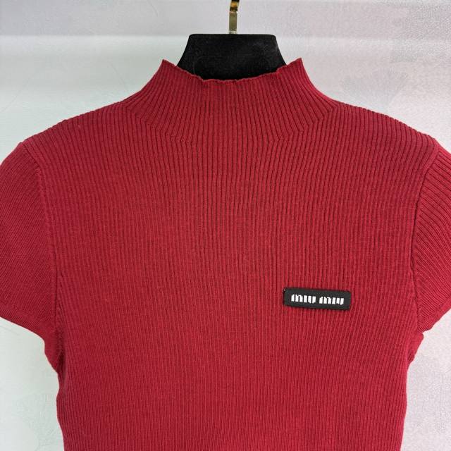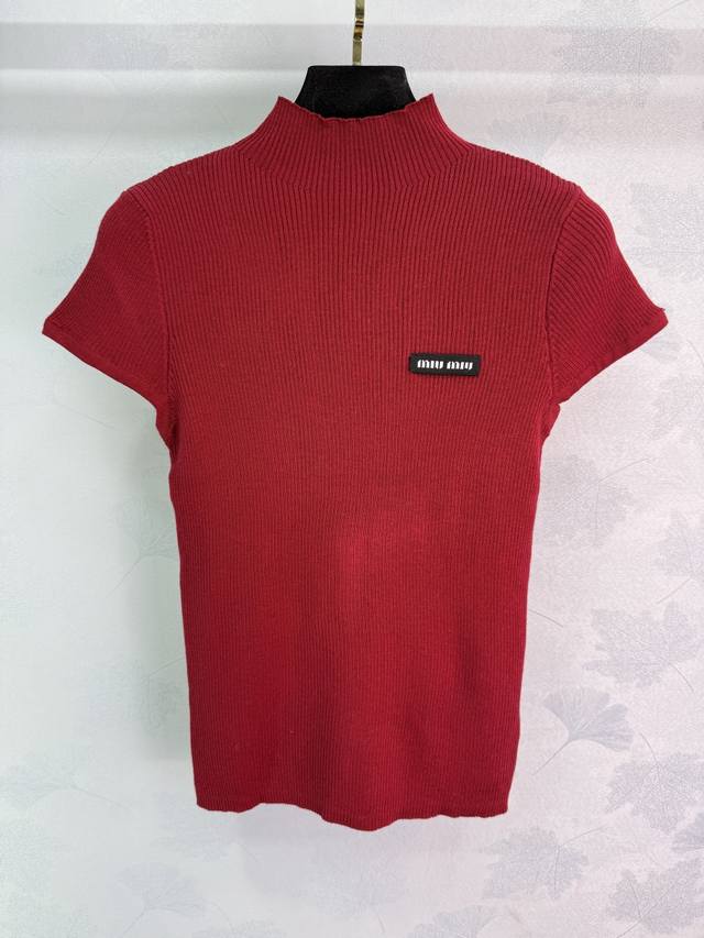 Miumi* 2025 Early Fall new model, a small turtleneck knitted short-sleeved top!