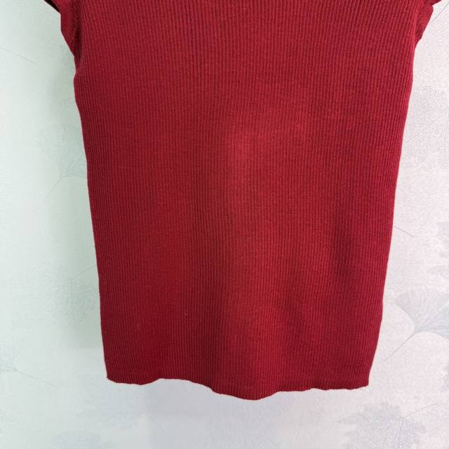 Miumi* 2025 Early Fall new model, a small turtleneck knitted short-sleeved top! Custom-made wool yarn with a delicate texture, soft and comfortable. The small turtleneck knitted short-sleeved top features three-dimensional tailoring for a refined look. The all-over vertical stripes and stretchy fabric create a flattering silhouette, flattering curves, and a logo embellishment on the chest showcases the brand's unique style. This versatile style is versatile and can be paired with skirts or pants for a youthful, fashionable, and retro look! 4 colors and 3 sizes Sml T226B