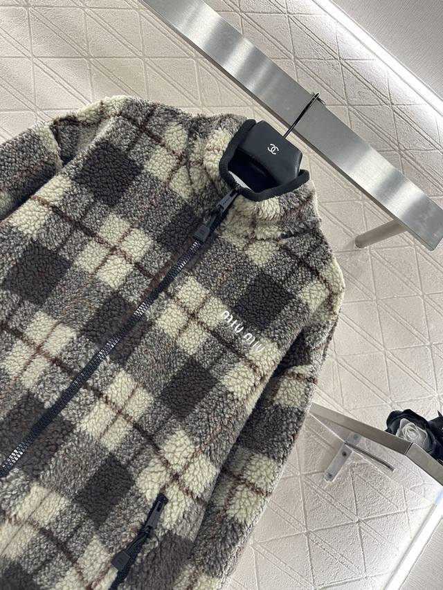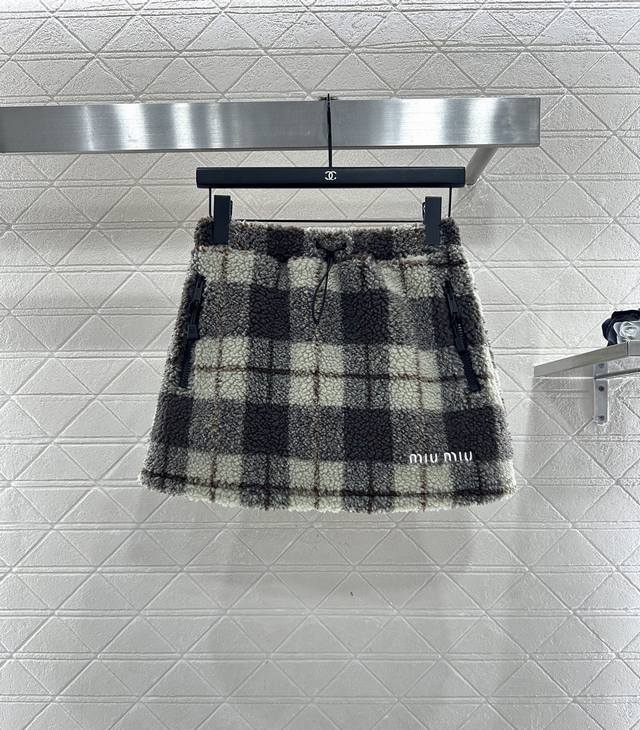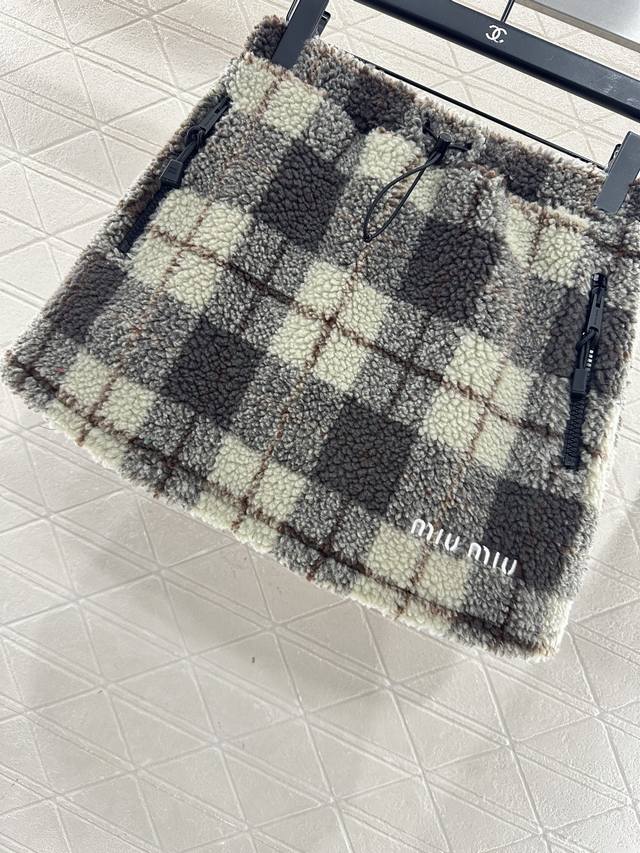 Miumi 2025 New Arrival DDD Checkered Teddy Plush Jacket and Skirt Set DDD The entire set is made of teddy plush material, soft and comfortable to the touch, stylish and chic. The stand-up collar jacket features a zippered front and a letter logo decoration on the chest, showcasing the brand's style. The plaid pattern consists of black, green, and red or beige and brown, with a structured silhouette and a fluffy feel, exuding a retro vibe. Pair it with a matching skirt; the drawstring at the top and bottom provides adjustable fit. The set enhances the cute and youthful atmosphere, making it a top choice for autumn and winter wear. It can also be layered easily. Custom fabrics and accessories, please ensure you choose the high-quality version. 2 colors available DDD Set DDD