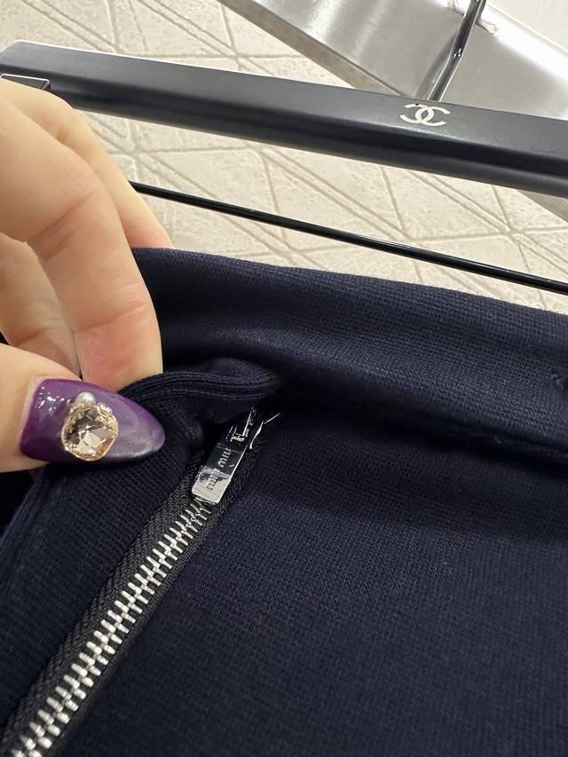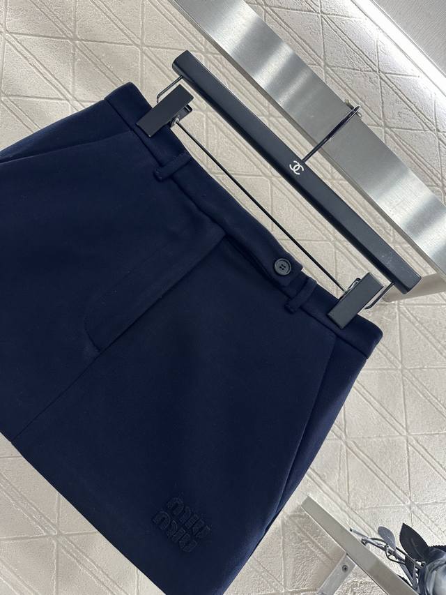 Miumi 2025 New Arrival DDD High-waisted Zipper Skirt DDD Custom-made imported Yb material, textured and lustrous, crisp and stylish. High-waisted short skirt cut, short style highlights casual and sexy look, elongates the leg proportions, side waist button details, letter logo decoration on the hem, showing the brand style. High-end and versatile navy blue, whether for autumn/winter or spring/summer wear, it is a high-level item that will definitely enhance your taste, fashionable and stylish. Custom-made fabrics and accessories, look for high-quality versions. DDD