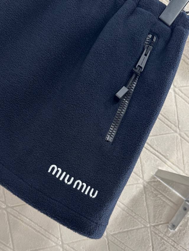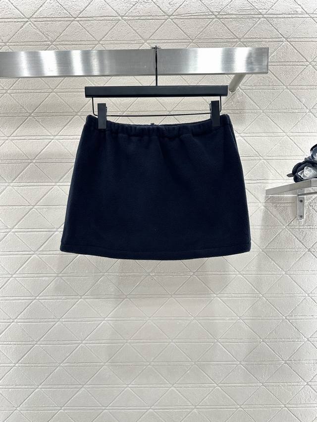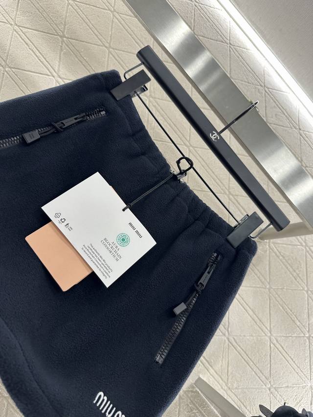 Custom Yb imported polar fleece material, plush and comfortable elastic drawstring skirt with symmetrical pockets and one-way zipper for adjustable closure. Simple and stylish silhouette with elastic fit. Slightly flared hem detailing for a relaxed waist. High-end lettering and logo details echo the brand's style, revealing a slim waist and long legs, showcasing a trendy casual workwear style. Customized fabrics and accessories, look for the high-end