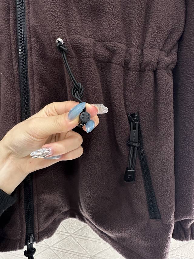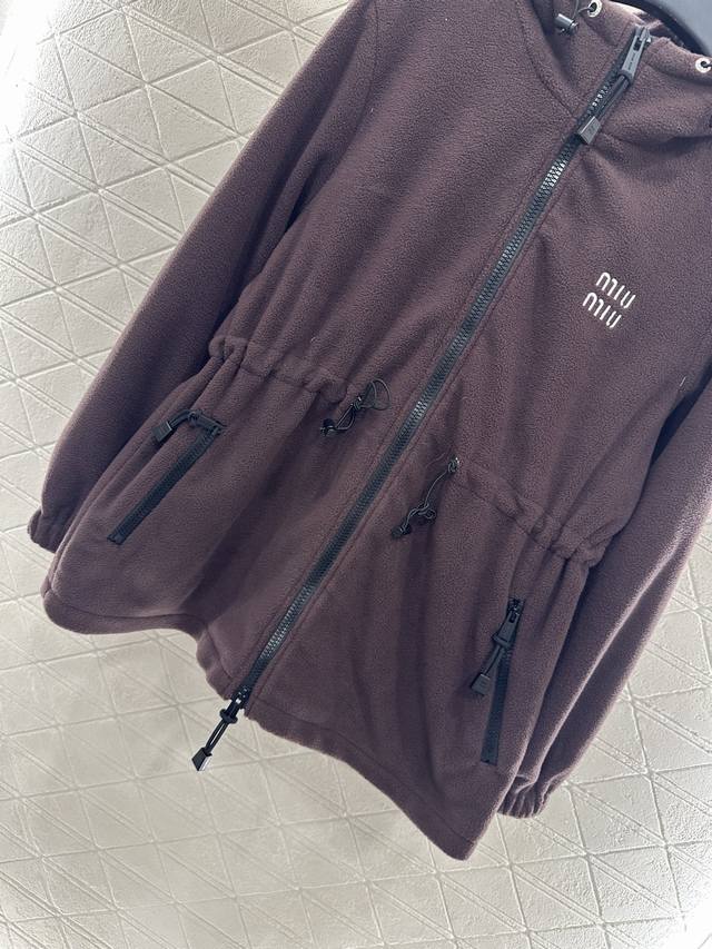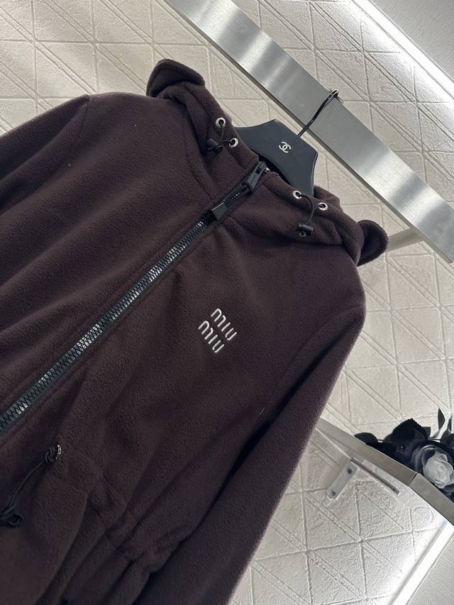 Miumi* 2025 New Arrival Teddy Plush Hooded Mid-Length Coat Custom Yb Imported fl