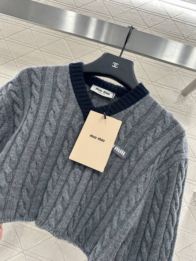 Cable-knit Contrast Short Pullover Sweater