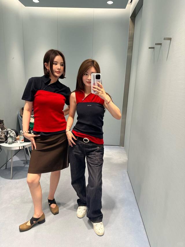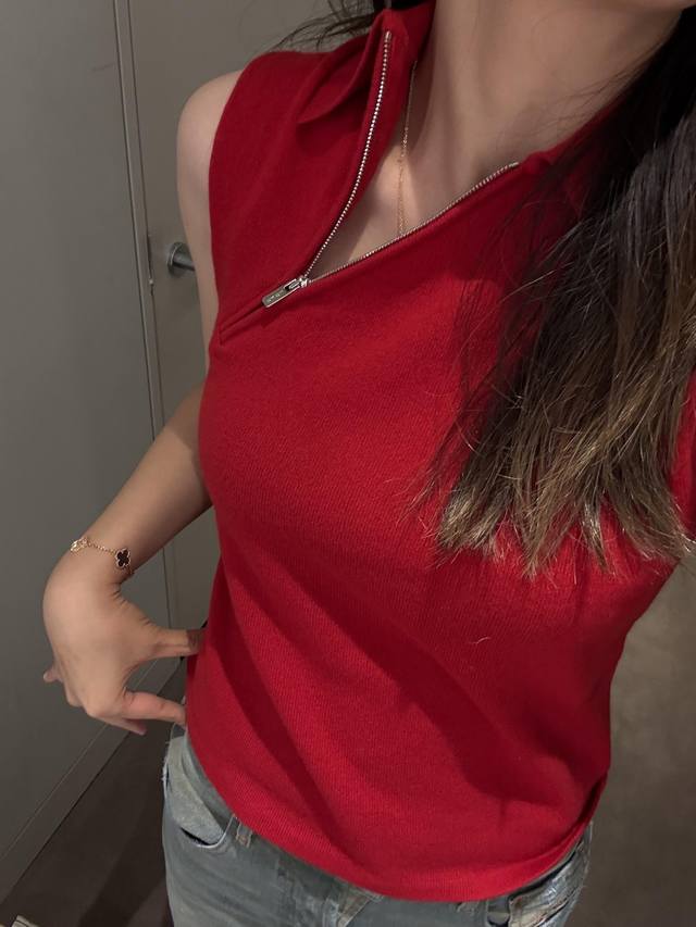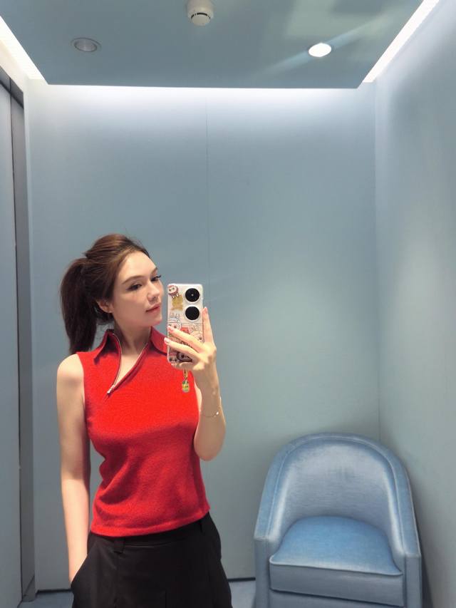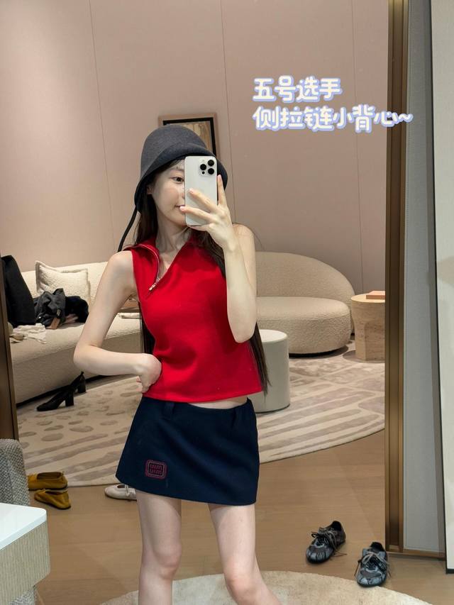 Miumi* 25Fw Early Autumn New Fashionable and Youthful Knitted Polo Vest | Exclusive Yb Development! High-Quality Version! Super Layering Must-Have! Irregular Side Zipper Design, Custom Cashmere Yarn! Elegant and Sweet Girlish Style, Flattering Fit for All Body Types and Super Slimming! Looks absolutely stunning on! High-quality version available! In Stock SML