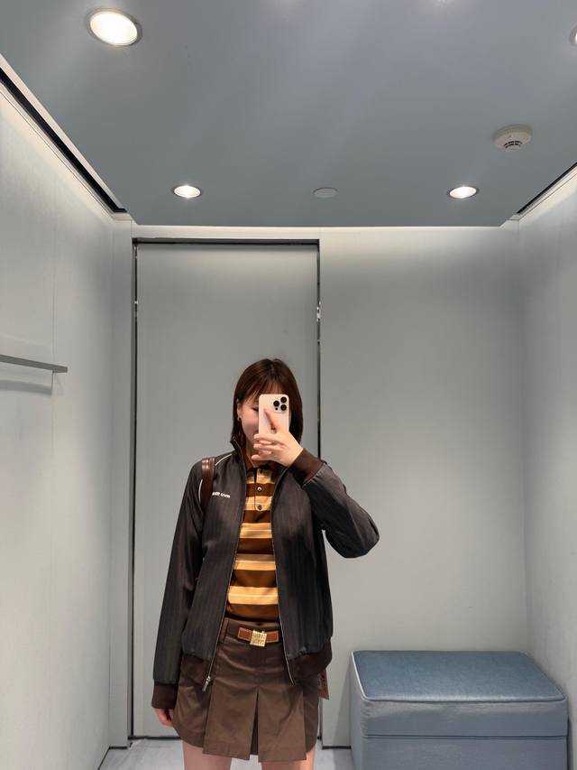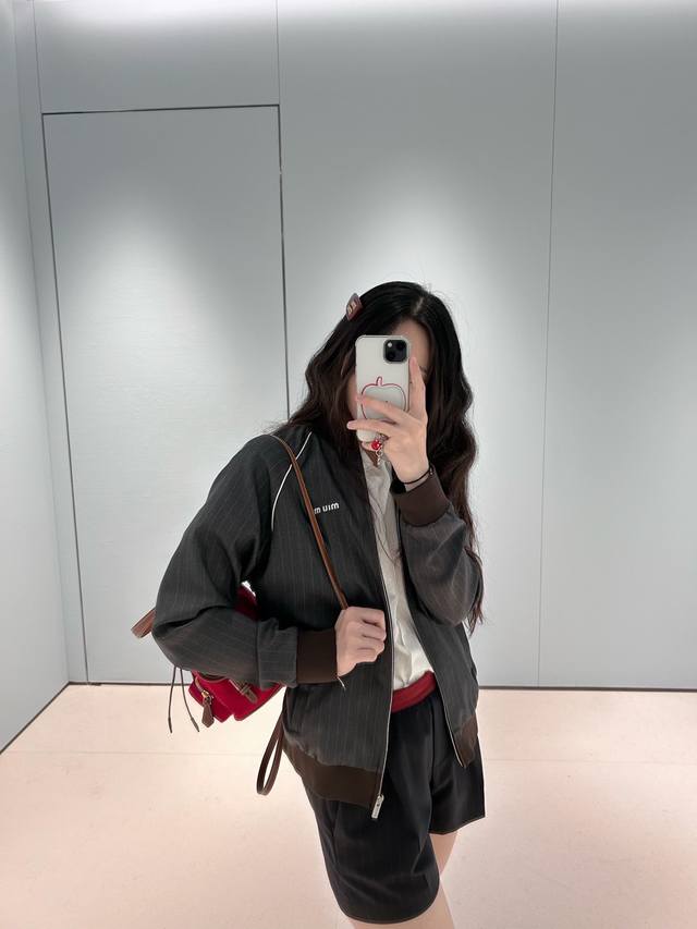Miumi* 25Fw Early Fall New Intellectual Preppy Style Drop Shoulder Jacket | Exclusive Yb Development! High-top version! Contrast ribbed collar design creates a sweet and cool look that's youthful. High-grade gray stripes are stylish and fashionable, and the loose fit is flattering on all sides! Custom-dyed worsted wool fabric is incredibly textured! Quality workmanship is reflected in the details! Available in sizes S, M, L, and