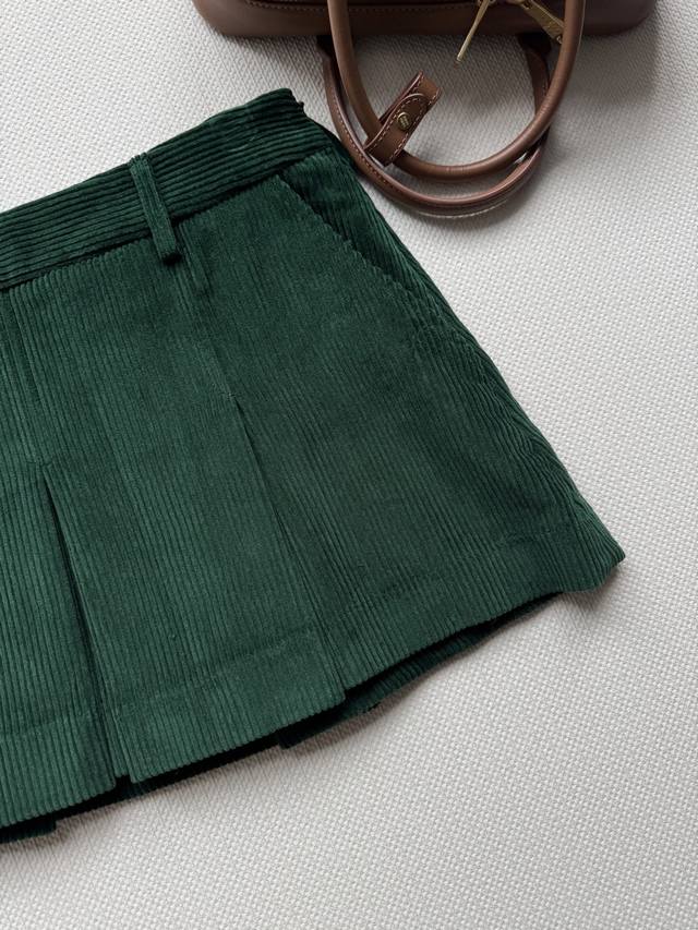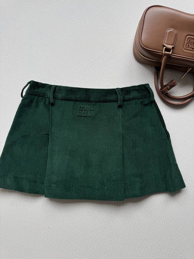 Miumi* 25Fw Early Fall new intellectual, preppy-style corduroy pleated skirt, or