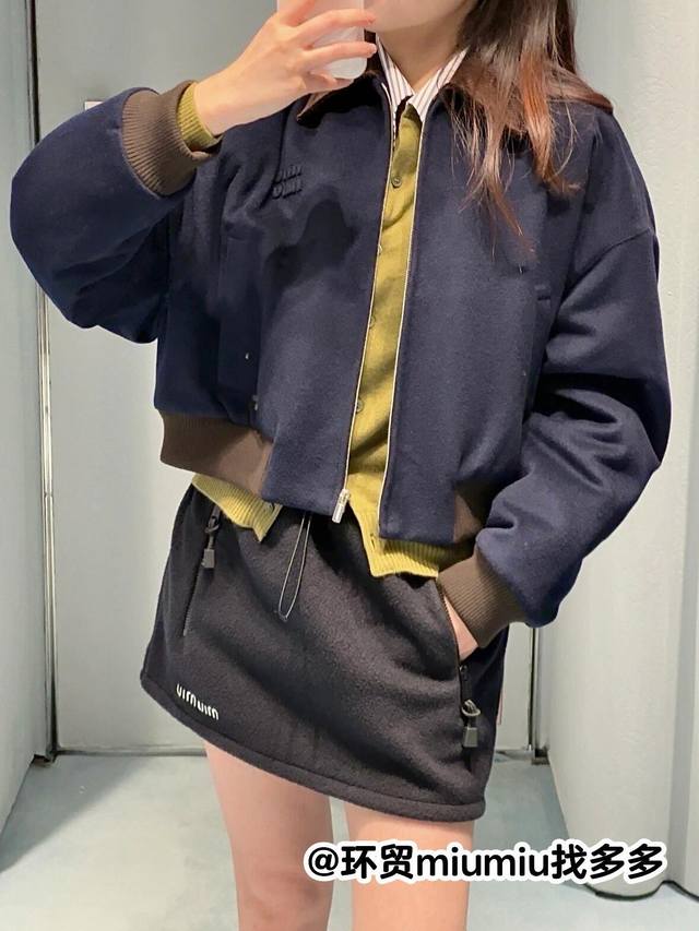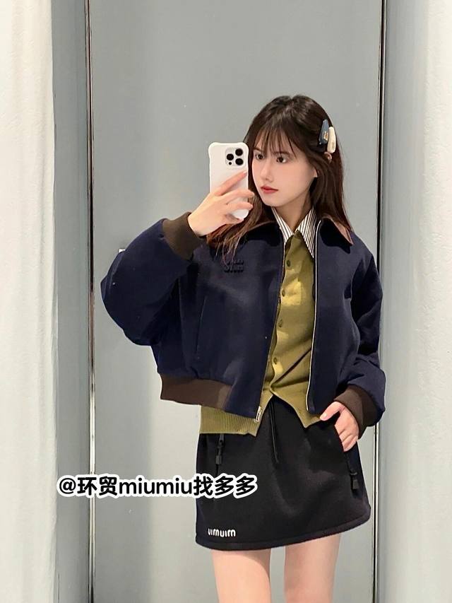 Miumi* 25Fw Early Fall New Velvet Lapel Wool Blend Cropped Jacket | Exclusive Yb Development! High-Quality Edition! Original custom wool blend fabric with contrasting plaid lining, and custom appliqu